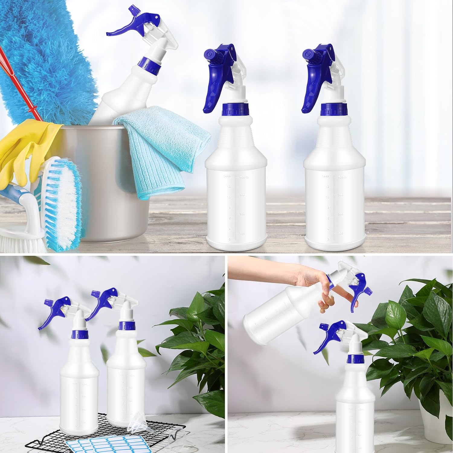 Zubebe 24 Pack 32 oz Plastic Spray Bottle Bulk Empty Leakproof Heavy Duty Spray Bottles for Cleaning Supplies Mist Bottles with Label and Adjustable Nozzle for Plant (Blue,Clear Scale)