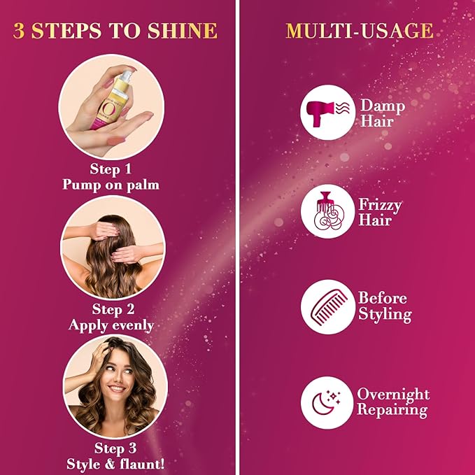- Combat Everyday Damage: Daily styling, blow-drying, and brushing can leave your hair dry and damaged, leading to increased breakage. This repairing oil helps combat the effects of everyday styling by providing intensive nourishment and hydration to your hair.