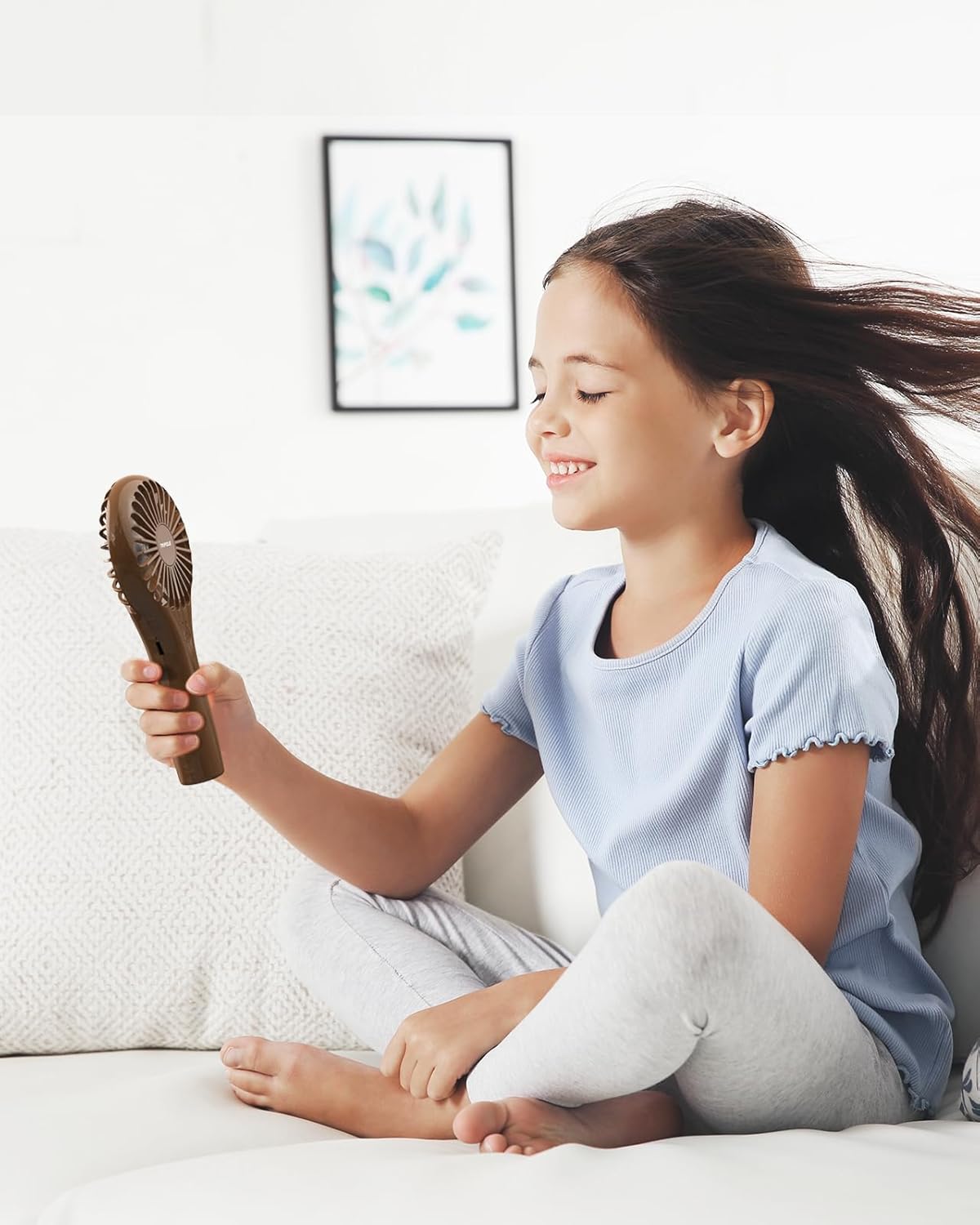 - Easy to Hold: Designed with the anti-slip handle that conform to ergonomic principle, the portable fan is very easy and comfortable to hold even by small hands, the lollipop shape is unique that would be an ideal gift for stylish girls, boys, men, women and kids