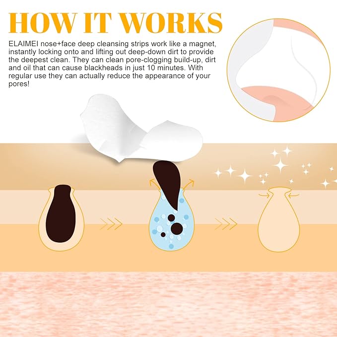 - Easy to Use: Cleaning and wetting the nose with warm water, peel the strip from its backing and apply to the nose or other affected area, leave the strip on for 10-15 minutes or until it feels stiff, then slowly peel off the strip.