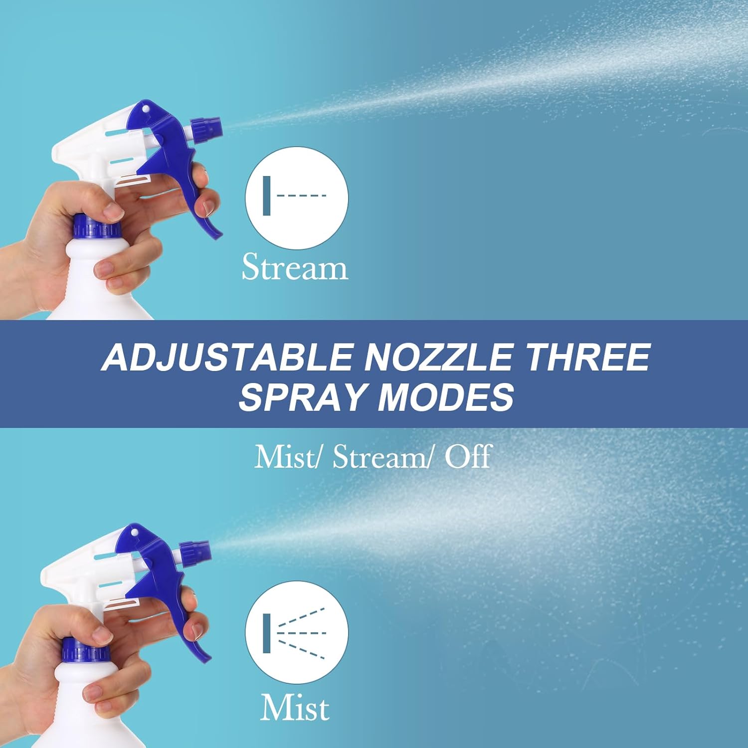 - Adjustable Nozzle Heavy Duty Spray Bottles: these water spray bottles are designed with an adjustable nozzle, there are 3 different modes: close, mist, and stream; Easy to rotate and use, the straw goes straight to the bottom of the bottle, avoiding wasting and spraying out; Providing convenience to your life