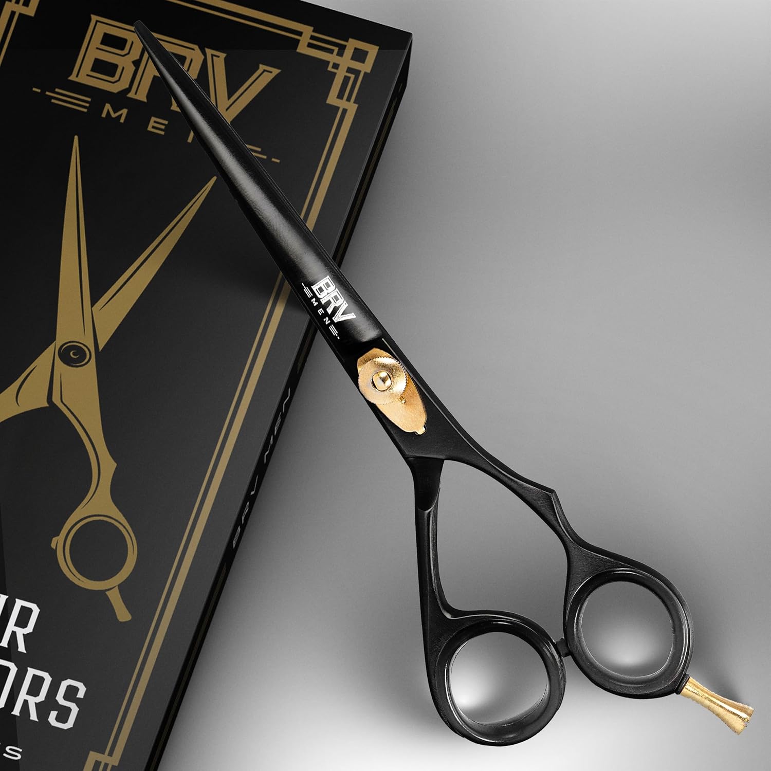 - RAZOR SHARP - Hammer forged hair cutting scissors comes with hand sharpened razor blades to cut at a single stroke. BRV MEN scissors are made to last a lifetime