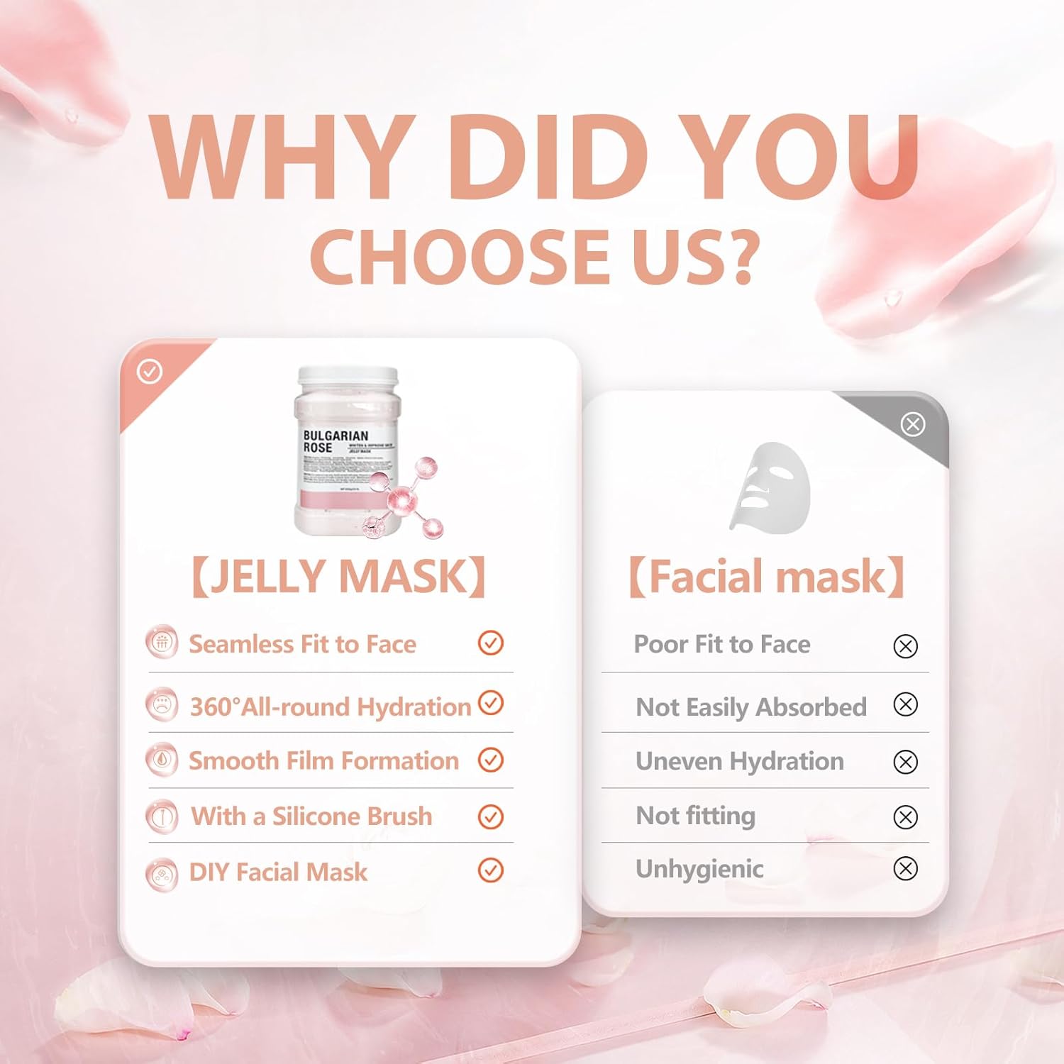 Jelly Mask for Facials, Hydrating & Moisturizing Peel-Off Rubber Gel Face Mask Skin Care for Deep Hydration & Glow, 23 Fl Oz Jar Professional Spa Use for All Skin Types with Bulgarian Rose
