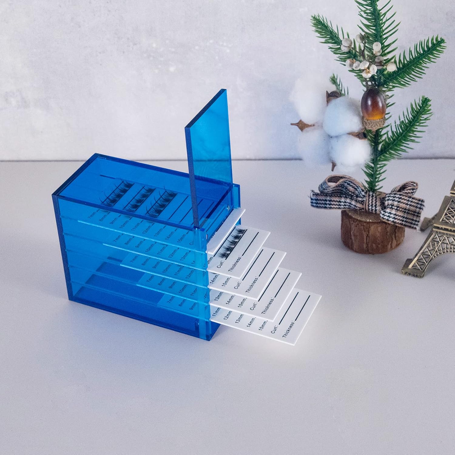 Lash Storage Organizer, Upgrade Design Small 5-Layer Lash Trays for Lash Extensions with magnet cover, Blue Semilucent lash tray Organizer, Eyelash Storage Box