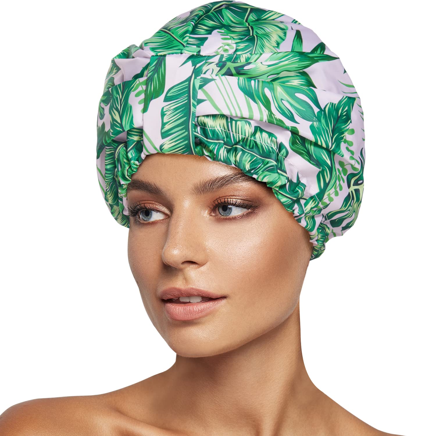 - Double Layer Design for Upgraded 100% Waterproof: Made of premium polyester outer layer coated with waterproof TPU, protects against humidity. Avoiding water vapor or water from entering your cap, always keeping your hair dry while in the shower or bathe.