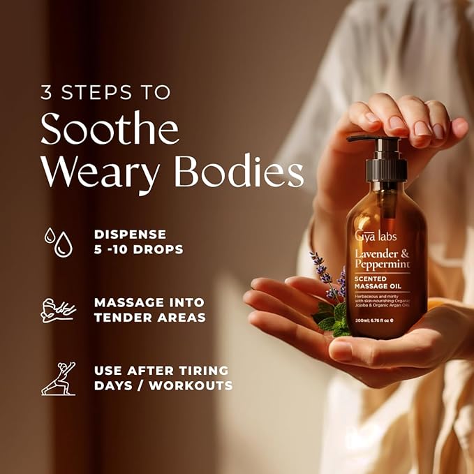 Gya Labs Lavender & Peppermint Massage Oil - 6.76 Fl Oz - 100% Pure Natural Aromatherapy Body Massage Oil for All Skin Types & Sore Muscles - Crafted with Jojoba, Argan, Sunflower & Sweet Almond
