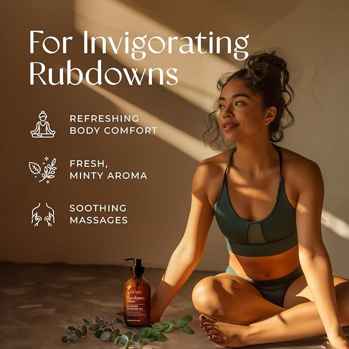 - A refreshing sore muscle massage oil. Our eucalyptus mint massage oils for massage therapy are known for their invigorating benefits that may help to soothe overworked bodies. Use our massage oils for massage therapy or aromatherapy.