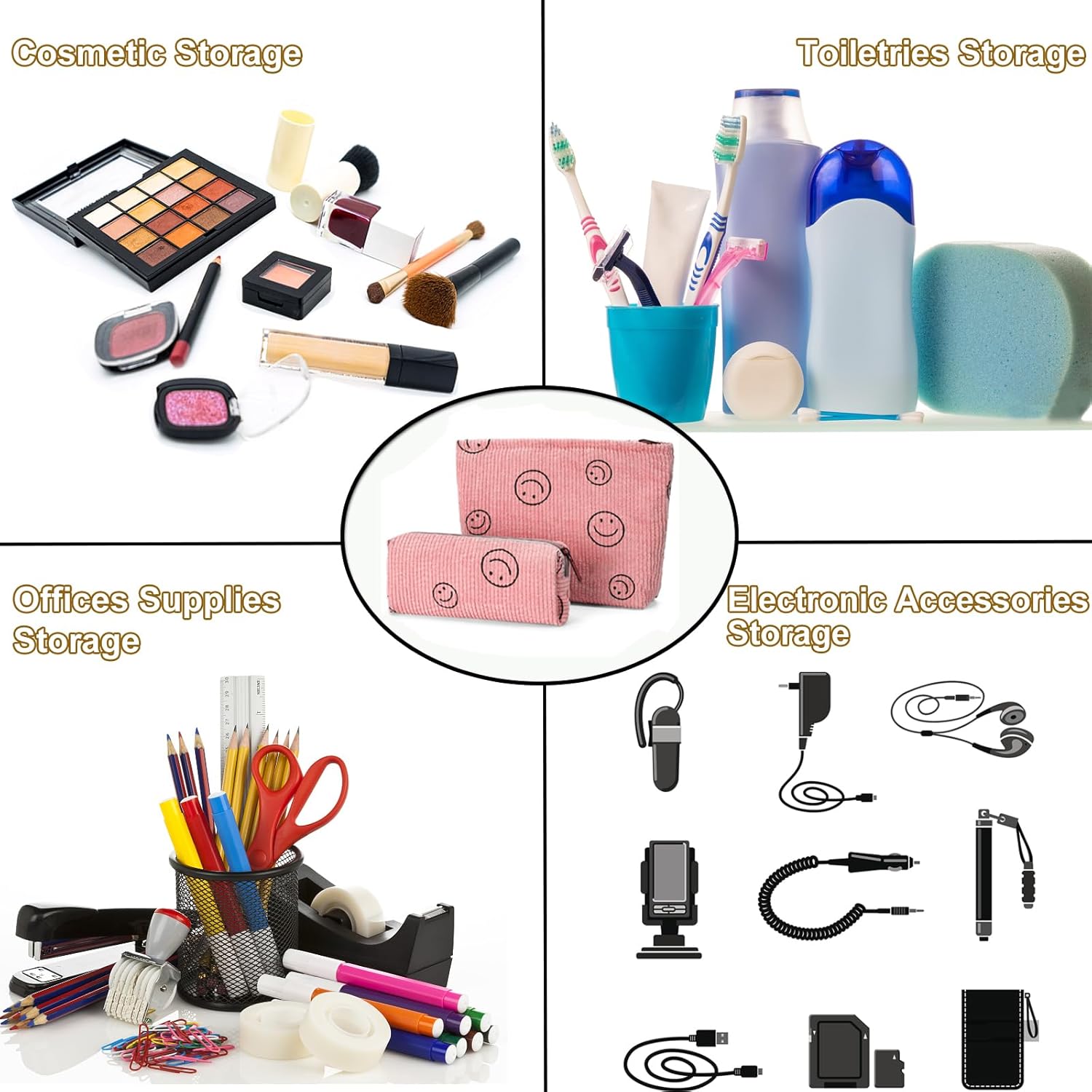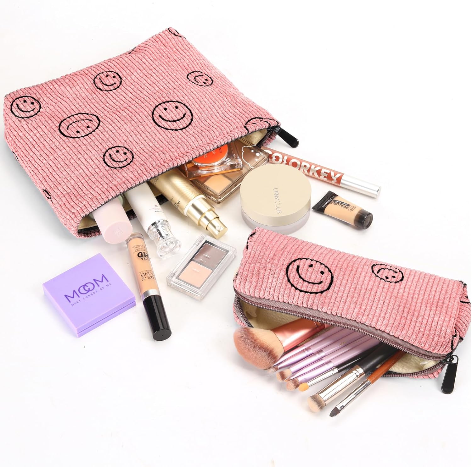 Makeup Bag, Cosmetic Bags for Women, Travel Makeup Bag, Pink Small Make Up Brush Pouch with Zipper, Corduroy Cute Cosmetic Toiletry Bag, Travel Essentials Aesthetic Preppy Stuff