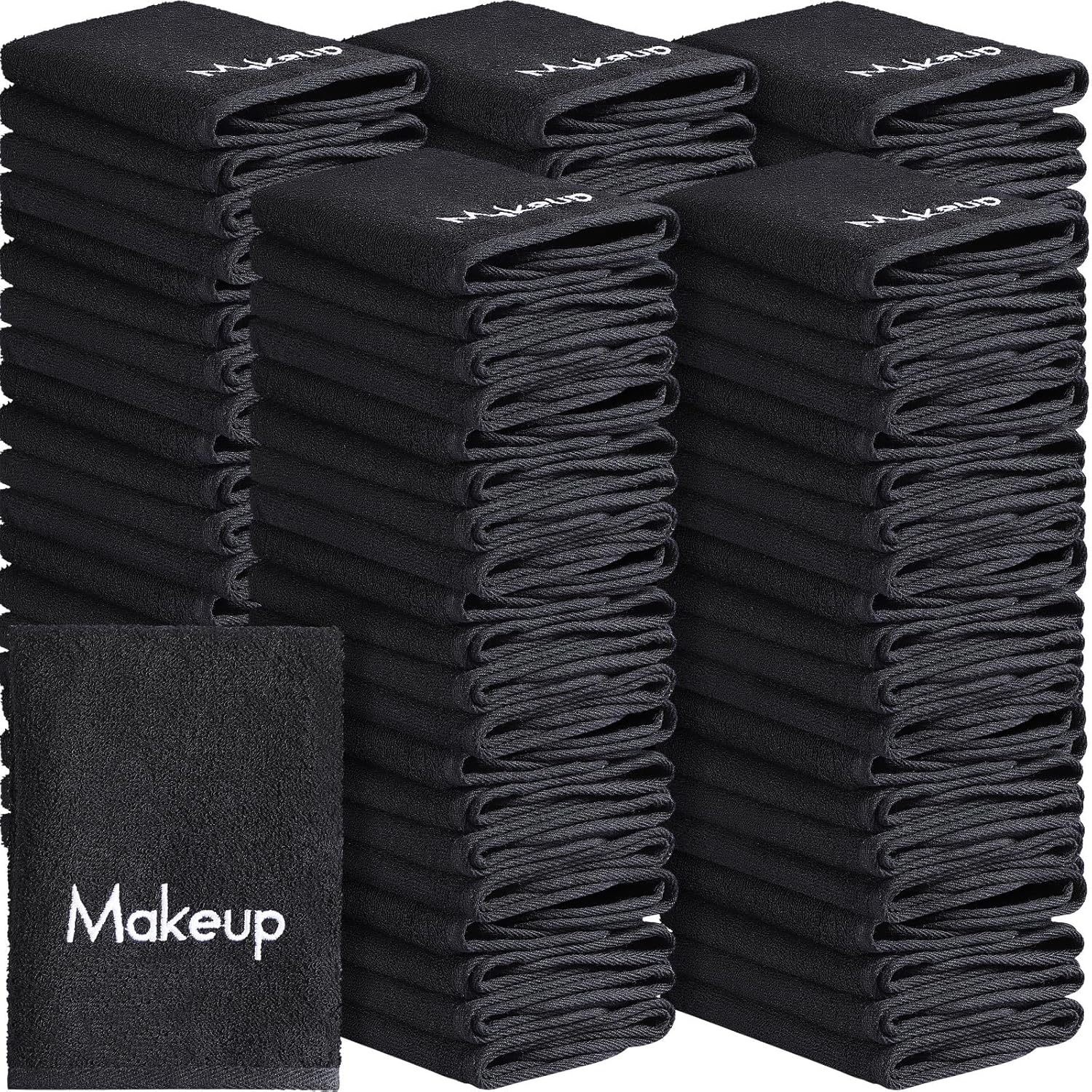 Chumia 100 Pcs Makeup Remover Cloths 13 x 13 Inch Makeup Towel Face Washcloths with Embroidery Black Reusable Washcloths Soft Cleansing Face Towel for Women