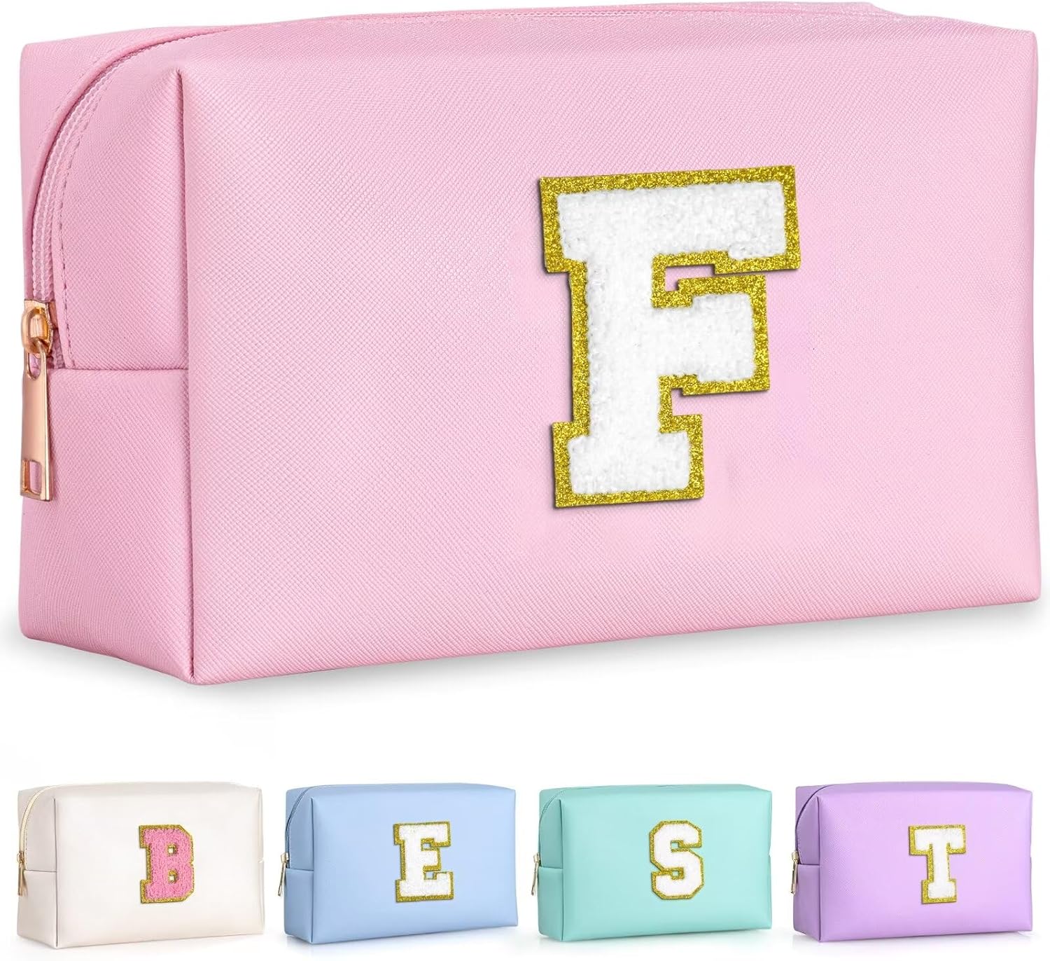 - Personalized Design: Features a stylish gold glitter chenille patch with your initials for a personalized touch.