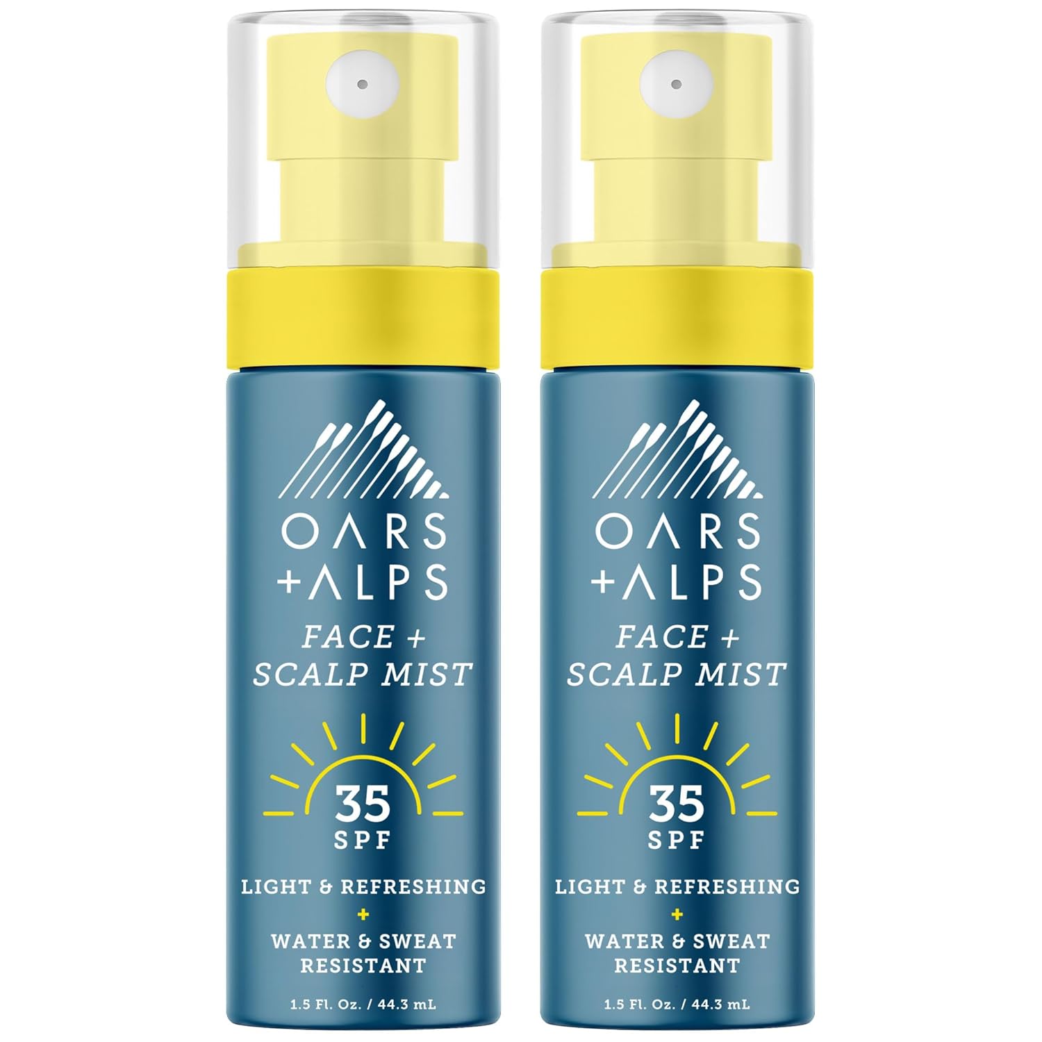 Oars + Alps Face & Scalp Sunscreen Spray Mist, SPF 35 Facial & Hair Sunscreen, Protects from Blue Light, Infused with Aloe Vera + Cucumber, Water & Sweat Resistant, Summer Splash Scent, 2pk