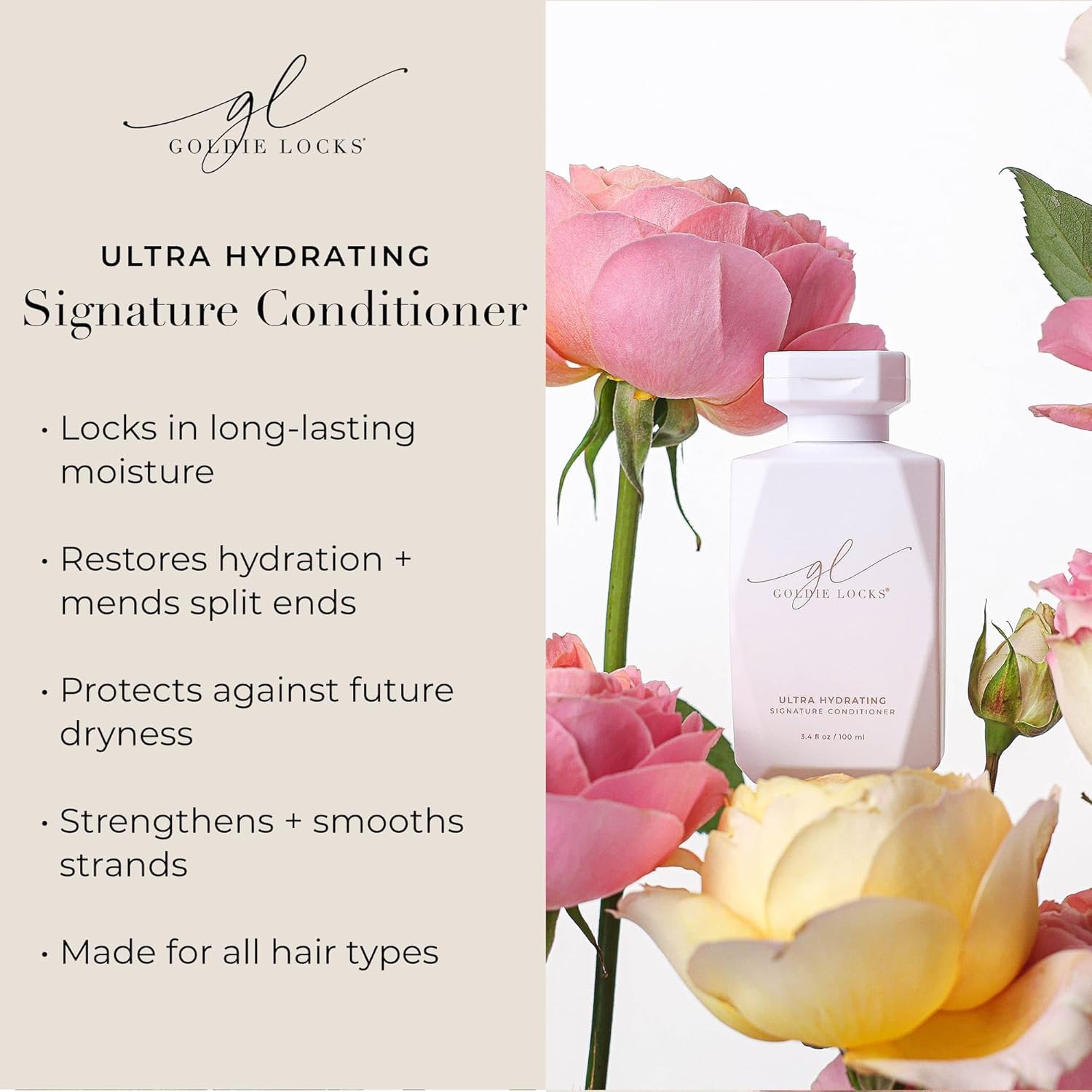Goldie Locks Ultra Hydrating Shampoo & Conditioner Set - Sulfate-Free, Paraben-Free - for Frizz Control, Shine & Strength - Color Safe & Extension Safe - Protein-Free - 2 x 33.8 fl oz