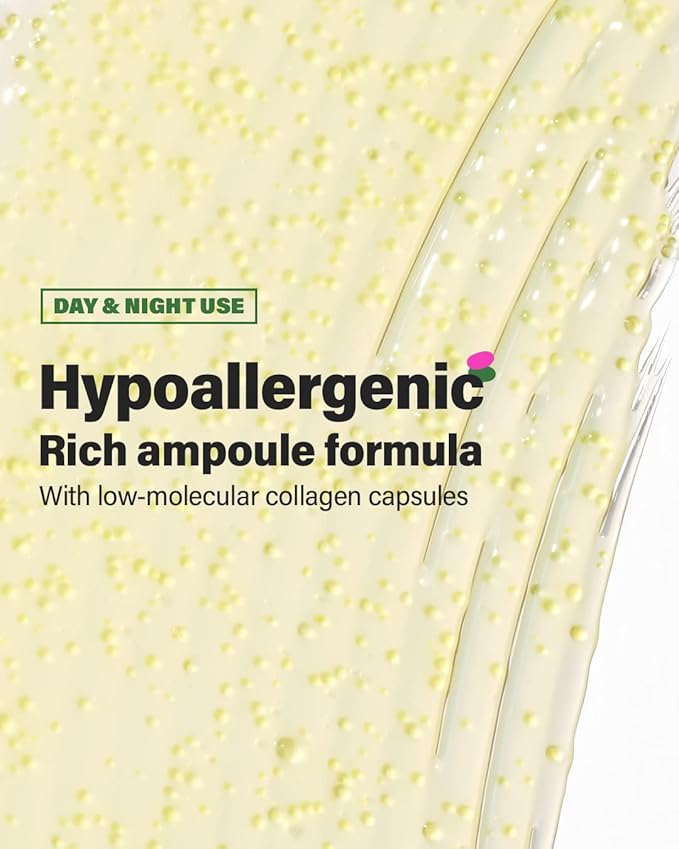 - DUAL FUNCTIONING ANTI-WRINKLE & TONE CORRECTING: The low molecular collagen and retinal in this ampoule work to increase collagen production. Additionally, the collagen support complex made up of hyaluronic acid and elastin helps to reduce the appearance of fine lines and wrinkles, making the skin look more youthful and radiant.
