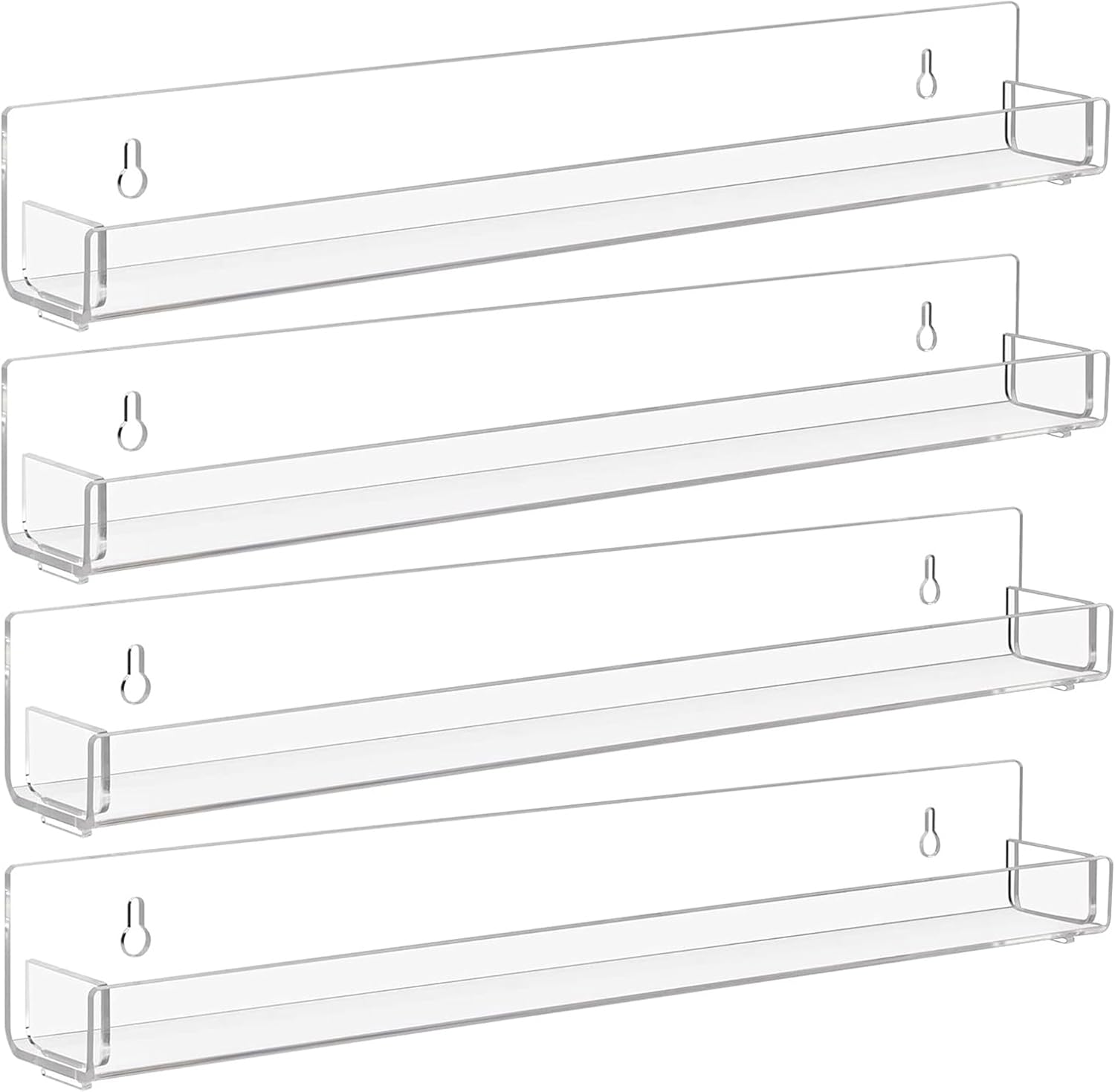 4 Pack Clear Nail Polish Rack Wall Mounted,15 inch Invisible Acrylic Floating Bookshelf,Small Toy Storage Wall Shelf Modern Picture Ledge Vinyl Record Display Shelf Holder