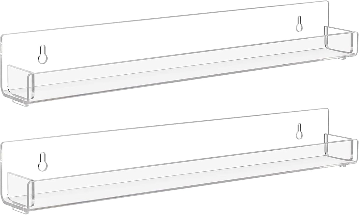 - SIZE:15 x 1.6 x 2 inch/each,5 mm thickness.package include 2 pieces of acrylic nail polish racks and install hardware,Holds up to 22-30 bottles of nail polish (actual number may vary based on size and shape of bottles), each wall floating shelf is individual, It can be installed in a row or separately according to your preference
