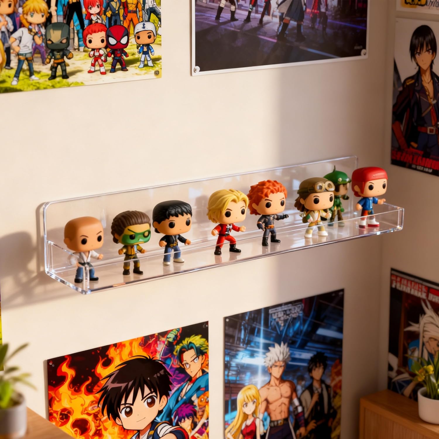 2 Pack Clear Nail Polish Rack Wall Mounted,15 inch Invisible Acrylic Floating Bookshelf,Small Toy Storage Wall Shelf Modern Picture Ledge Vinyl Record Display Shelf Holder
