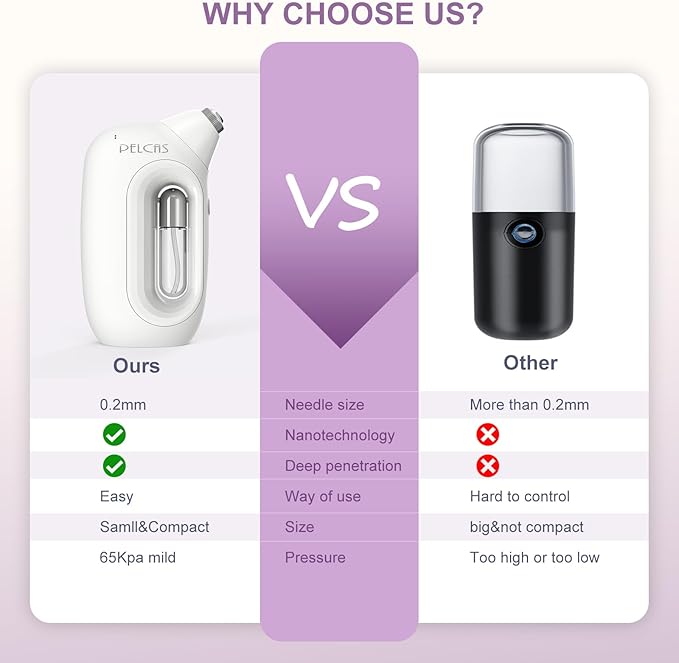- [Deep Hydration] Negative oxygen ions and nutrients are injected deep into the skin through PELCAS Nano airbrush, improving the appearance and quickly hydrating and moisturizing the skin. Ultra-fine mist softens the outer layer of dead skin cells and removes impurities deeper into the skin more easily.