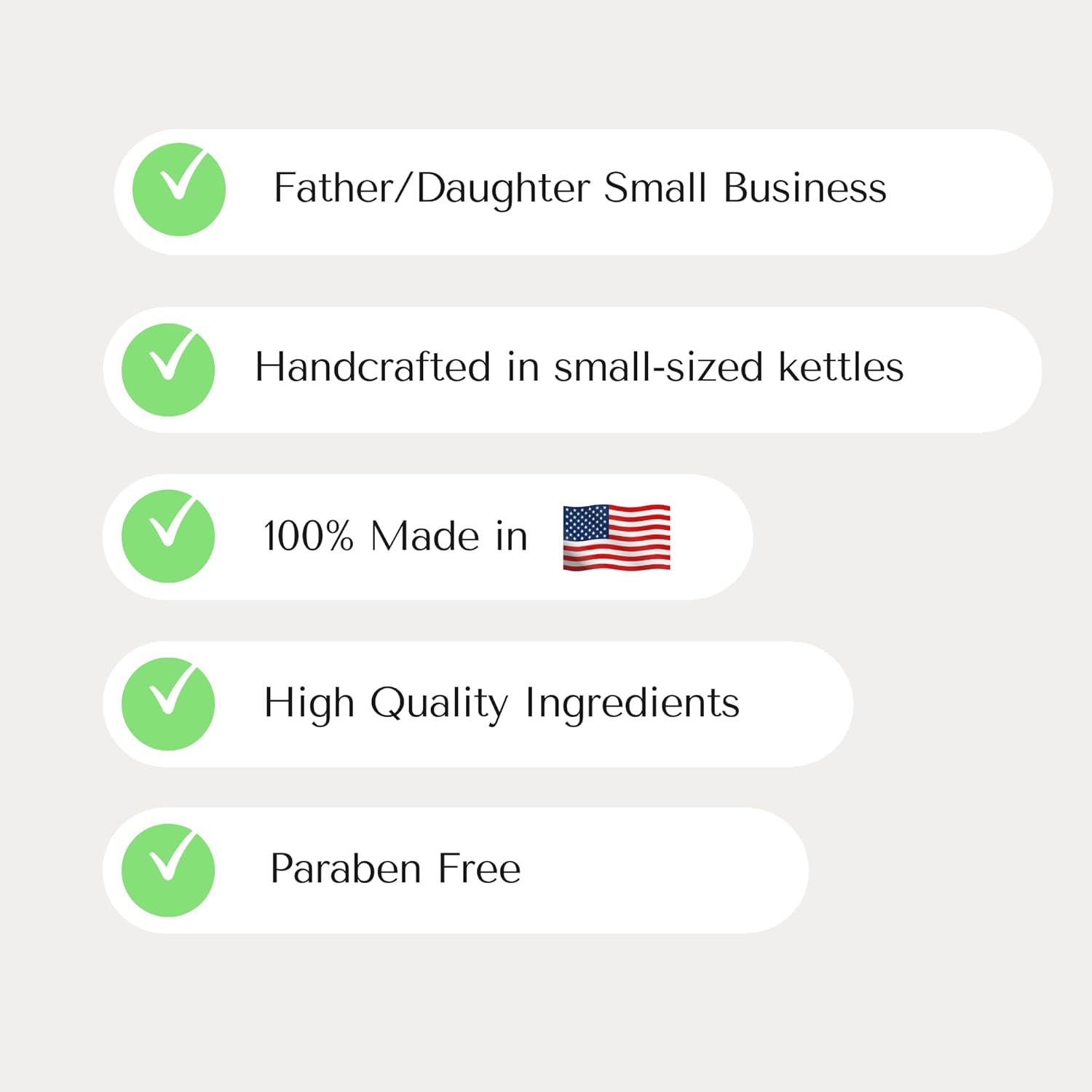 - HANDMADE IN INDIANA – Proudly created in small kettles by our father/daughter team for the highest quality. Every bottle is filled with care!