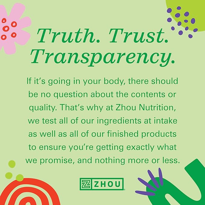 - BASED IN THE HEART OF UTAH: At Zhou, we use only the highest-quality ingredients in a facility following Good Manufacturing Practices. Plus, we test everything at our lab in Utah, so you can be confident that you're fueling your body with the very best.