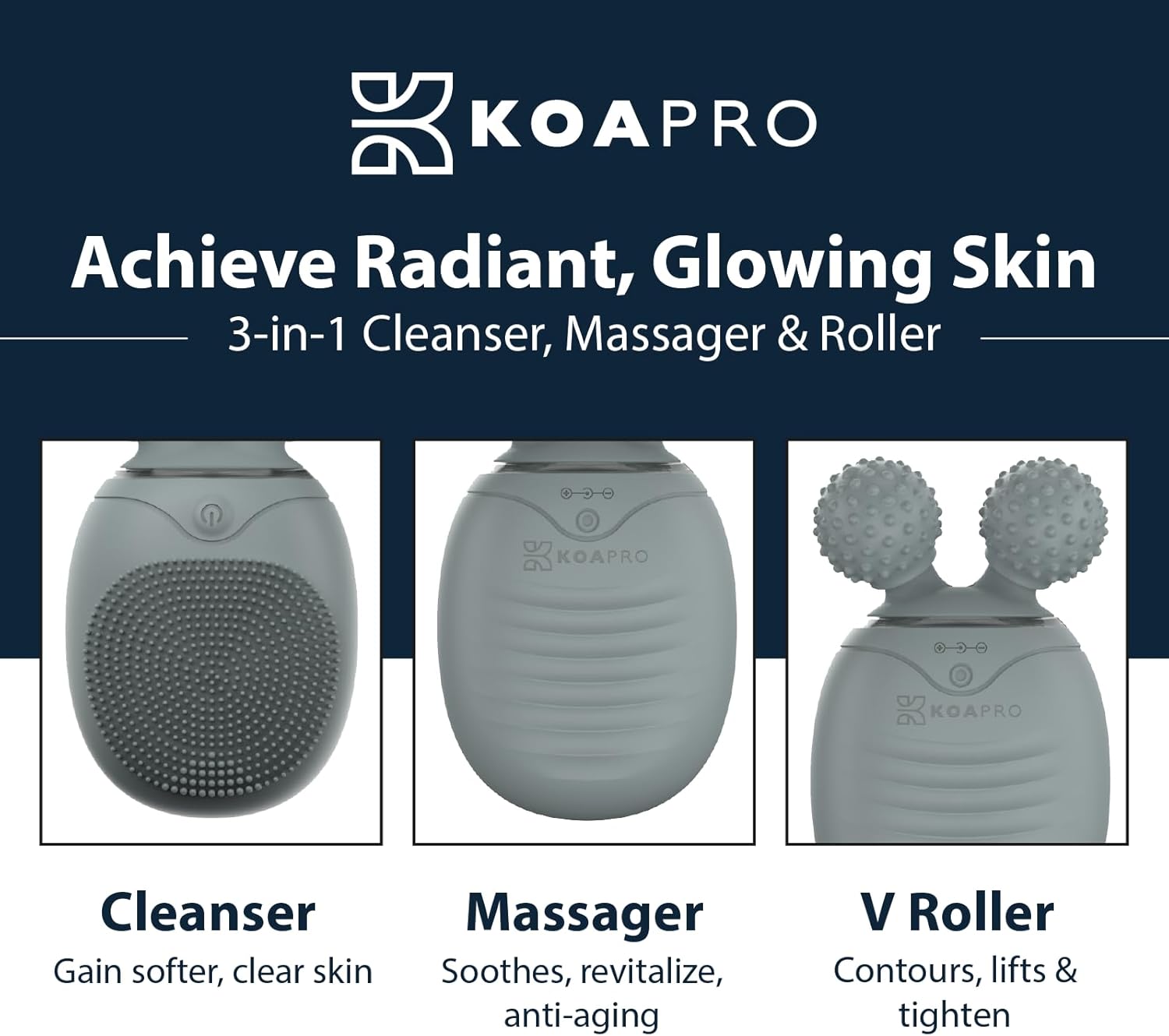 KOAPro Facial Cleansing Brush Exfoliating Face Scrubber for Women and Men, Waterproof Face Brush Cleanser, 3-in-1 Rechargeable Electric Facial Massager Tool, Reusable Sonic Silicone Scrubber