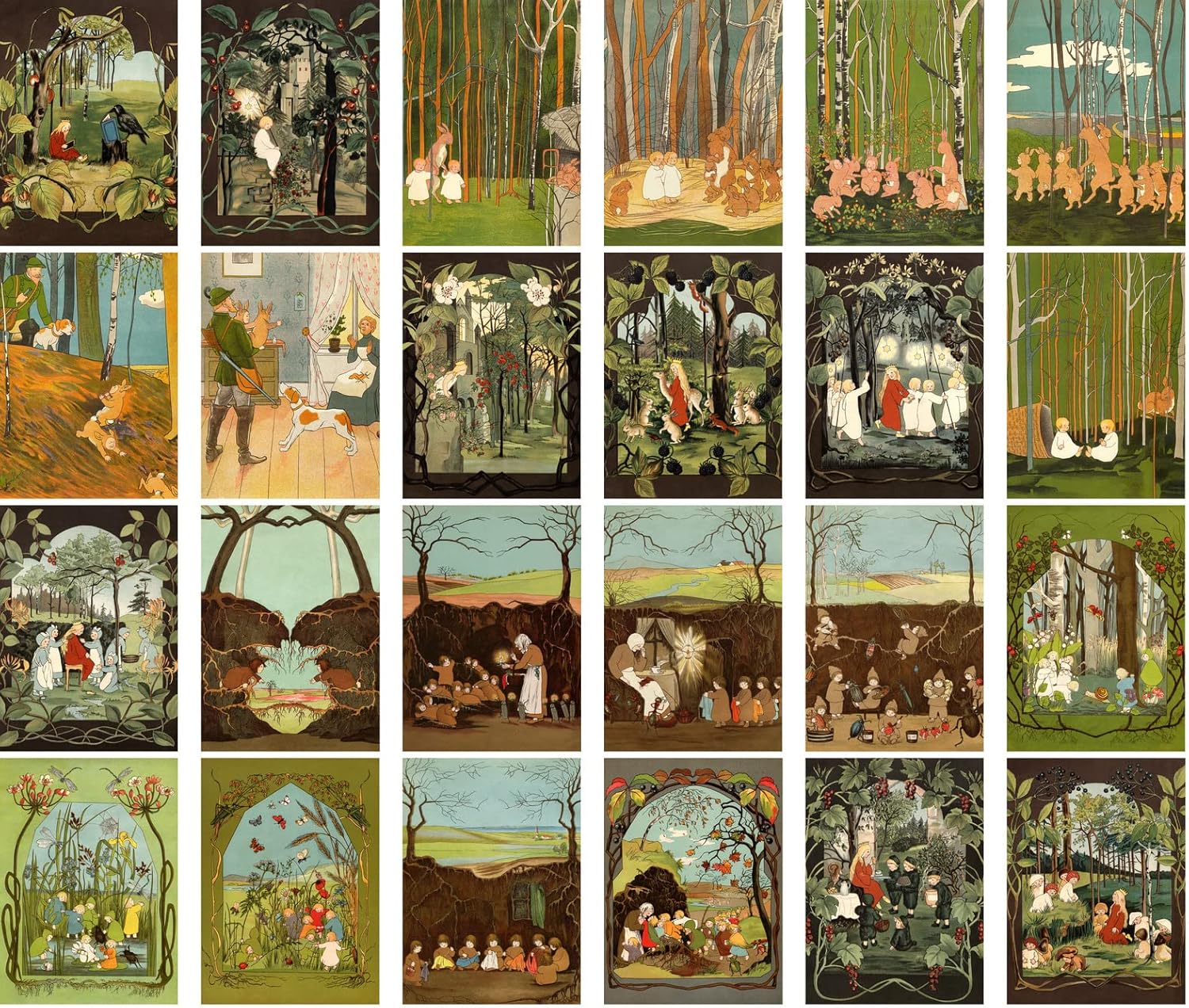 PIXILUV Vintage Postcards (24 pcs 4"x6" each) Pretty Illustrations from Children's Books and Stories Vintage Postcards Retro Greeting Card Book Illustration Reprint