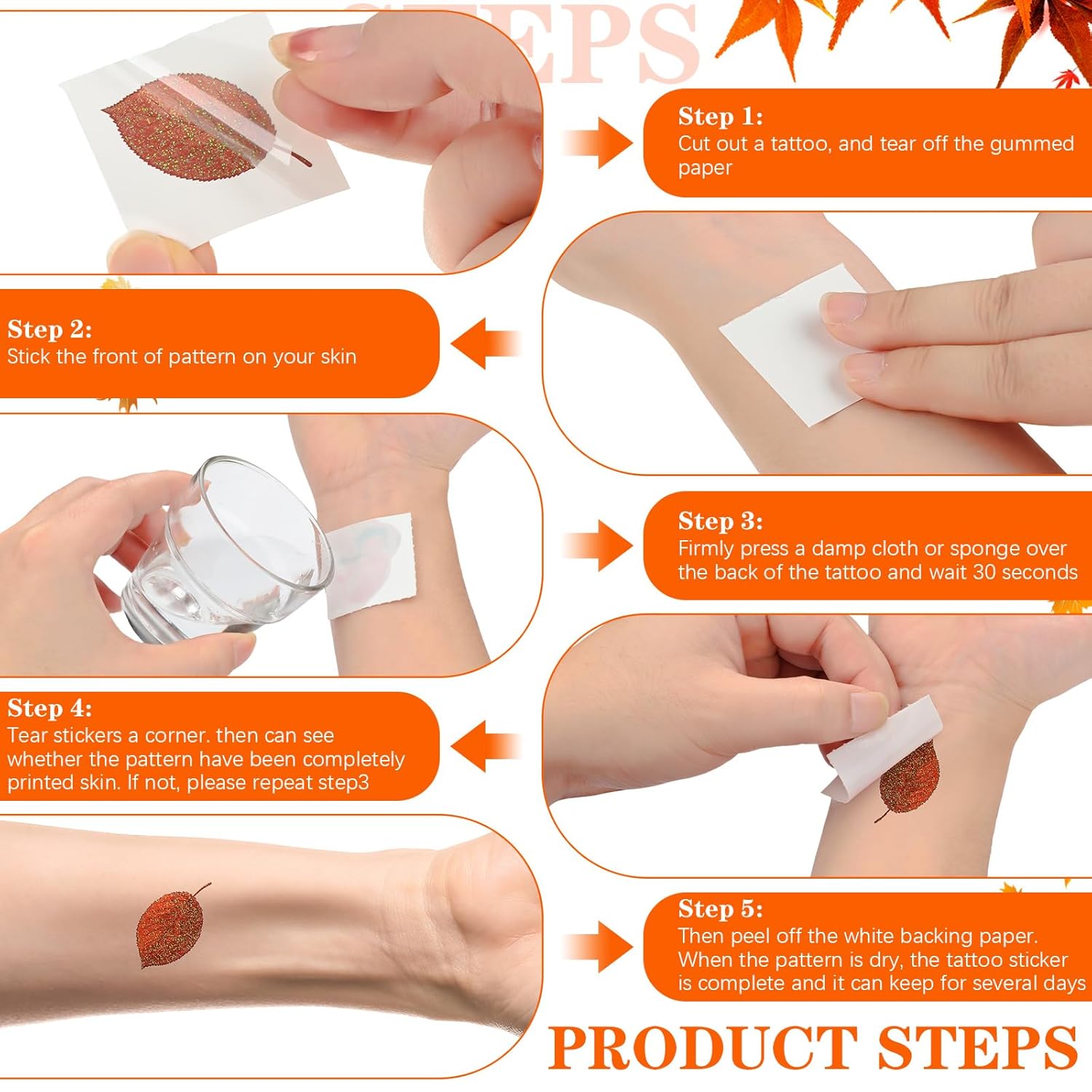 - Fall Leaves Glitter Tattoos Package Content: you will get 240 pieces of fall leaves glitter tattoos, each sheet contains 24 different styles of glitter maple leaves tattoos stickers, a total of 10 sheets; The abundant quantity and various patterns offer you many choices to choose the one you like for tattoos making, enough to satisfy your daily using and sharing on autumn themed party, make a nice party