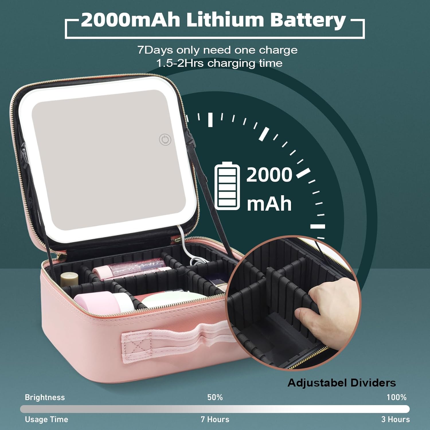 - 【Ideal Gift for Her】Our portable travel makeup bag with lighted mirror make you worry-free. Makeup bag with light up mirror is a great choice for travel, business trip, fitness, camping, home use. And a perfect gift for your wife, girlfriend, mother on any special day like Birthday, Valentine's Day, Mother's Day, Halloween, Christmas, and anniversary.