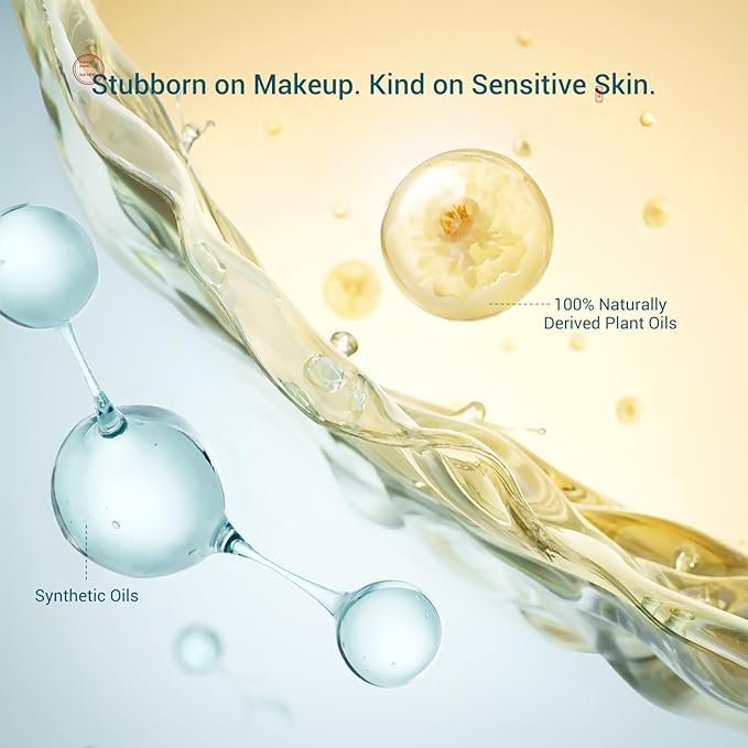 - Stubborn on Makeup. Kind on Sensitive Skin: Jojoba oil, plant-derived squalane, and olive oil effortlessly moisturize while removing stubborn waterproof makeup without any oily residue. A gentle formula for sensitive skin, this oil is 100% naturally derived plant oils and contains no petrochemicals, parabens, fragrances, or alcohol.
