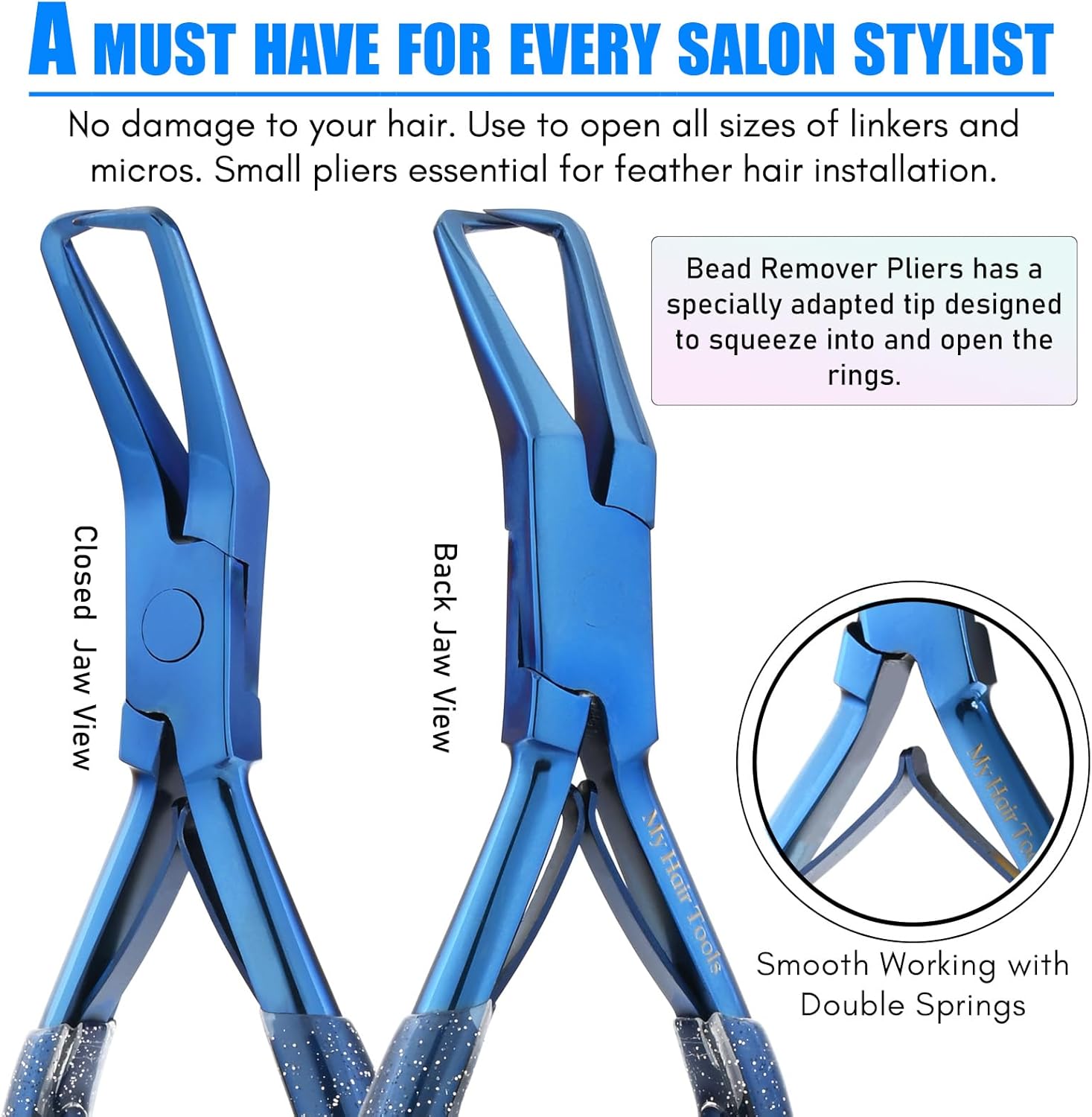- ๐ Micro Beads Remover Pliers 5.5inches have a specially adapted tip designed to squeeze into and open the rings. A unique handle allows for a comfortable and strong grip. These Eco-friendly pliers with soft grip, guarantee you will save time. Specifically for hairdressers who want to be the best in hair extensions.