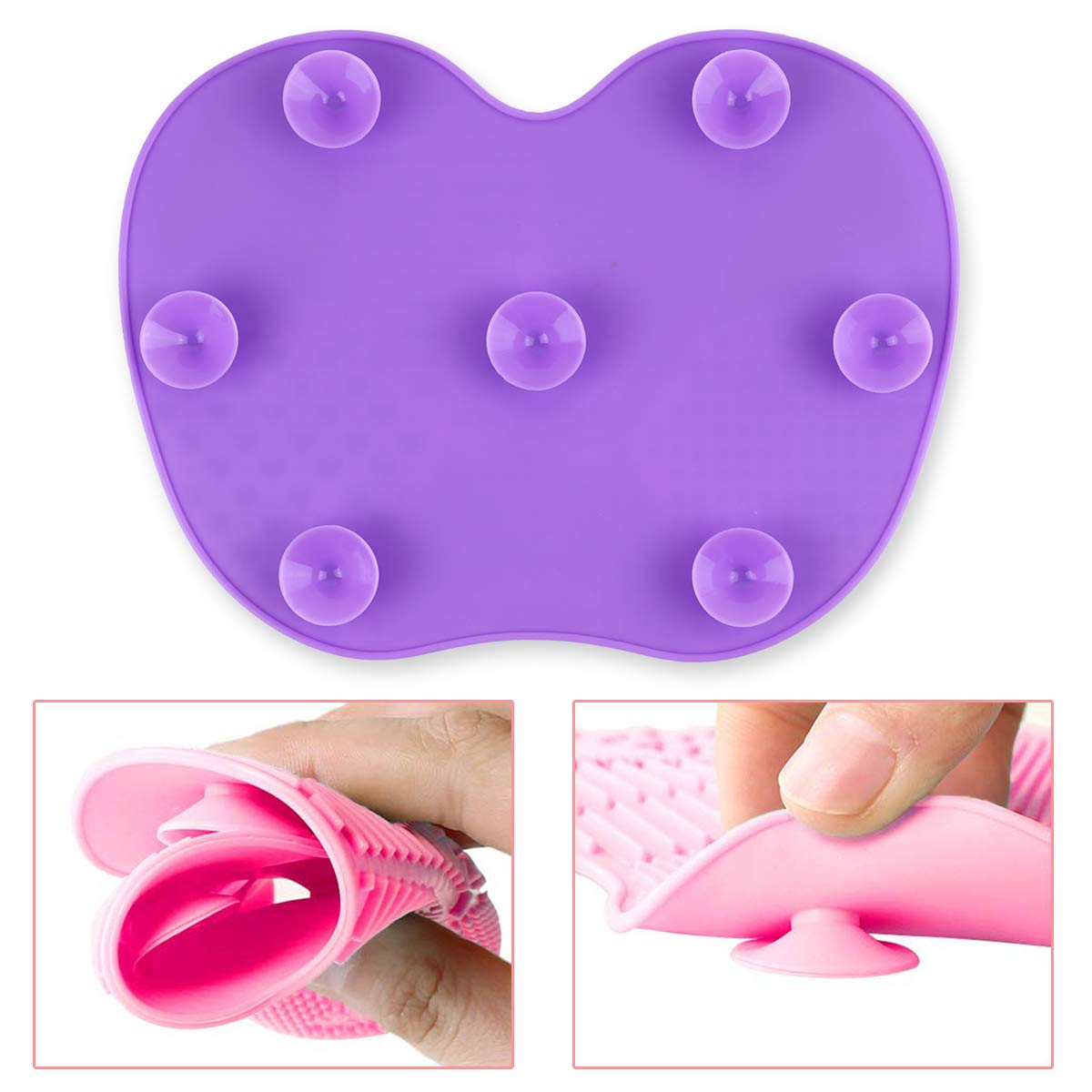 Silicon Makeup Brush Cleaning Mat - Multi-Textured Surface, Suction Cup for Hands-Free Use, Portable Design - Purple