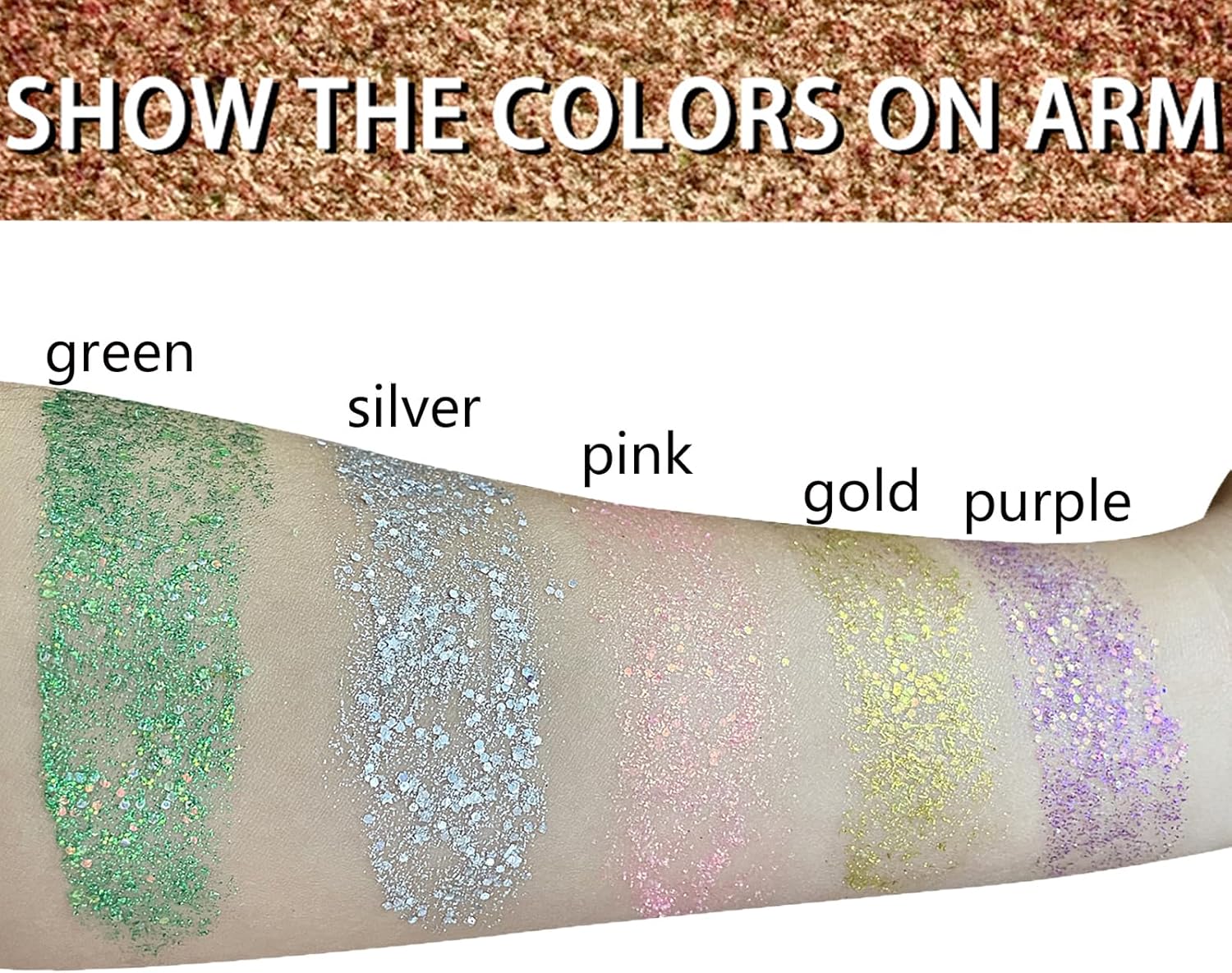 - ๐Waterproof And Sweatproof:MEICOLY body glitter contains water resistant and sweat resistant formula,hold up well even get caught in rain when at singer concert,can lasted through the entire rain show.Also sweat resistant,it is like new after lots of sweat for dancing