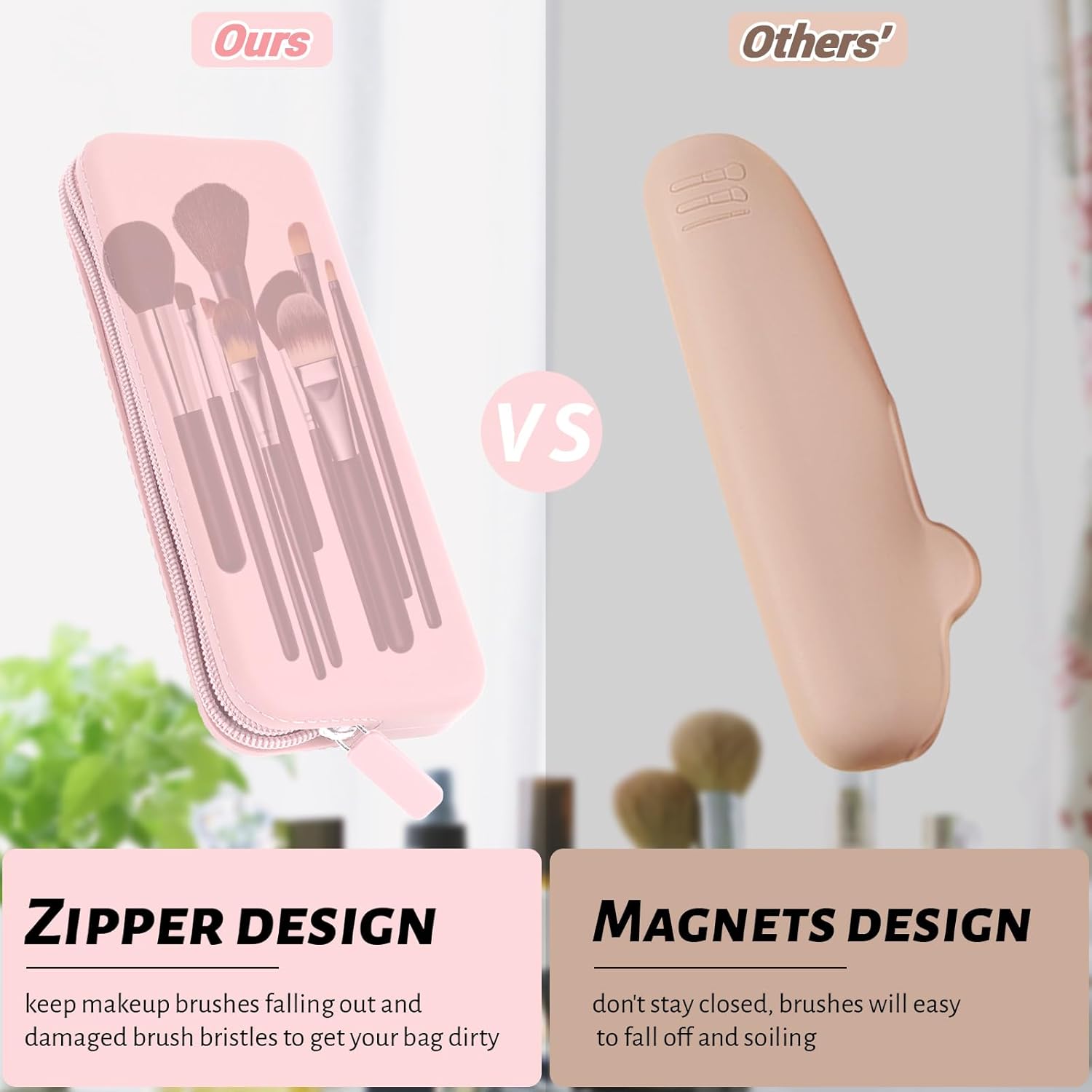 - 💄【Zipper Travel Makeup Bag】We've upgraded this makeup brush holder from a traditional magnetic closure to a more practical and convenient zipper closure, which prevent damaged brush bristles. This new design allows for easy access to your makeup brush while keeping them organized and tidy. Most importantly, the zipper closure does a better job of preventing your brushes from falling out and keeping them clean