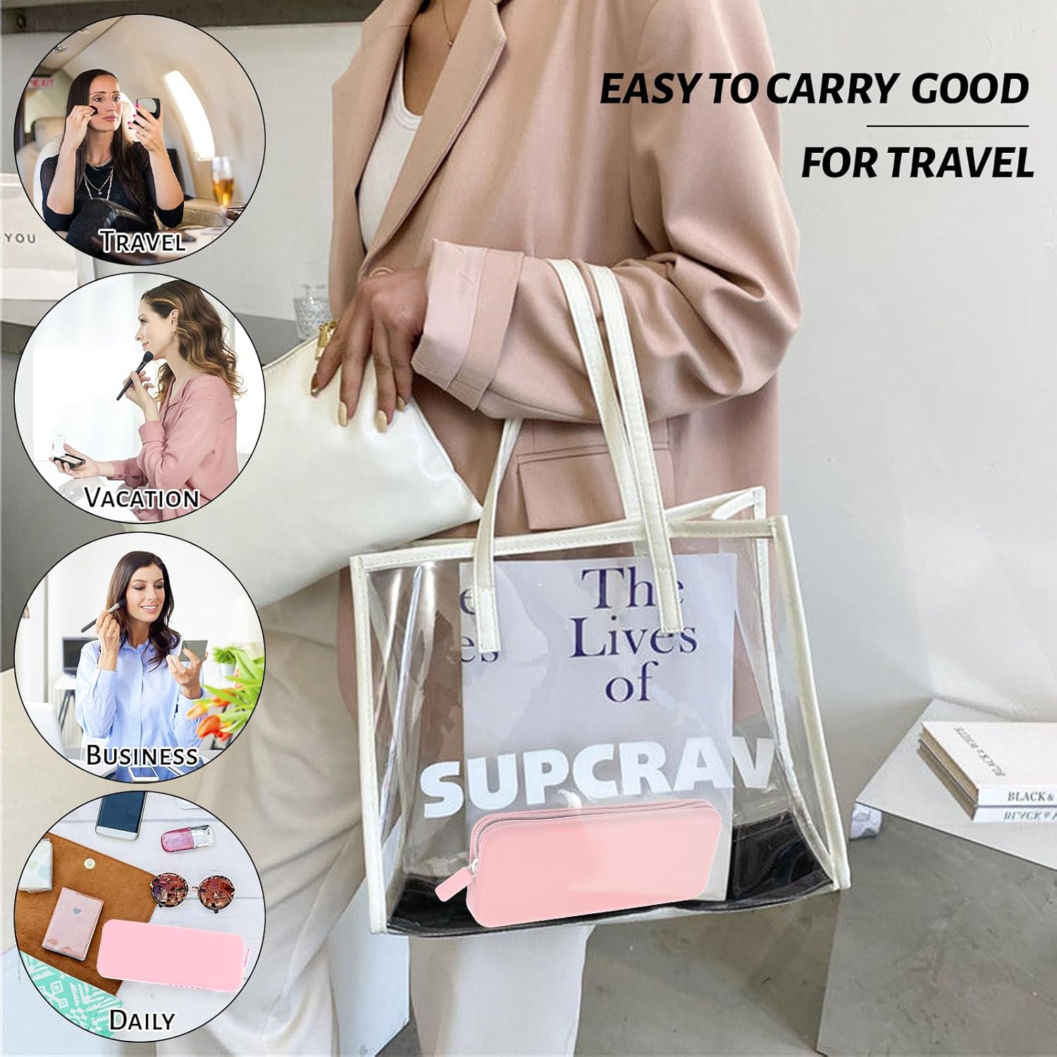 - 💄【Multipurpose & More Space】Light weigh makeup pouch, the larger size allows you to fit full-sized brushes, making it perfect for storing makeup brushes, lipstick, eyeshadow, toothbrushes, p encils, eyebrow pencils, and other small items. It can also be used as a versatile cosmetic bag, knife and fork storage bag, toothbrush bag, and more