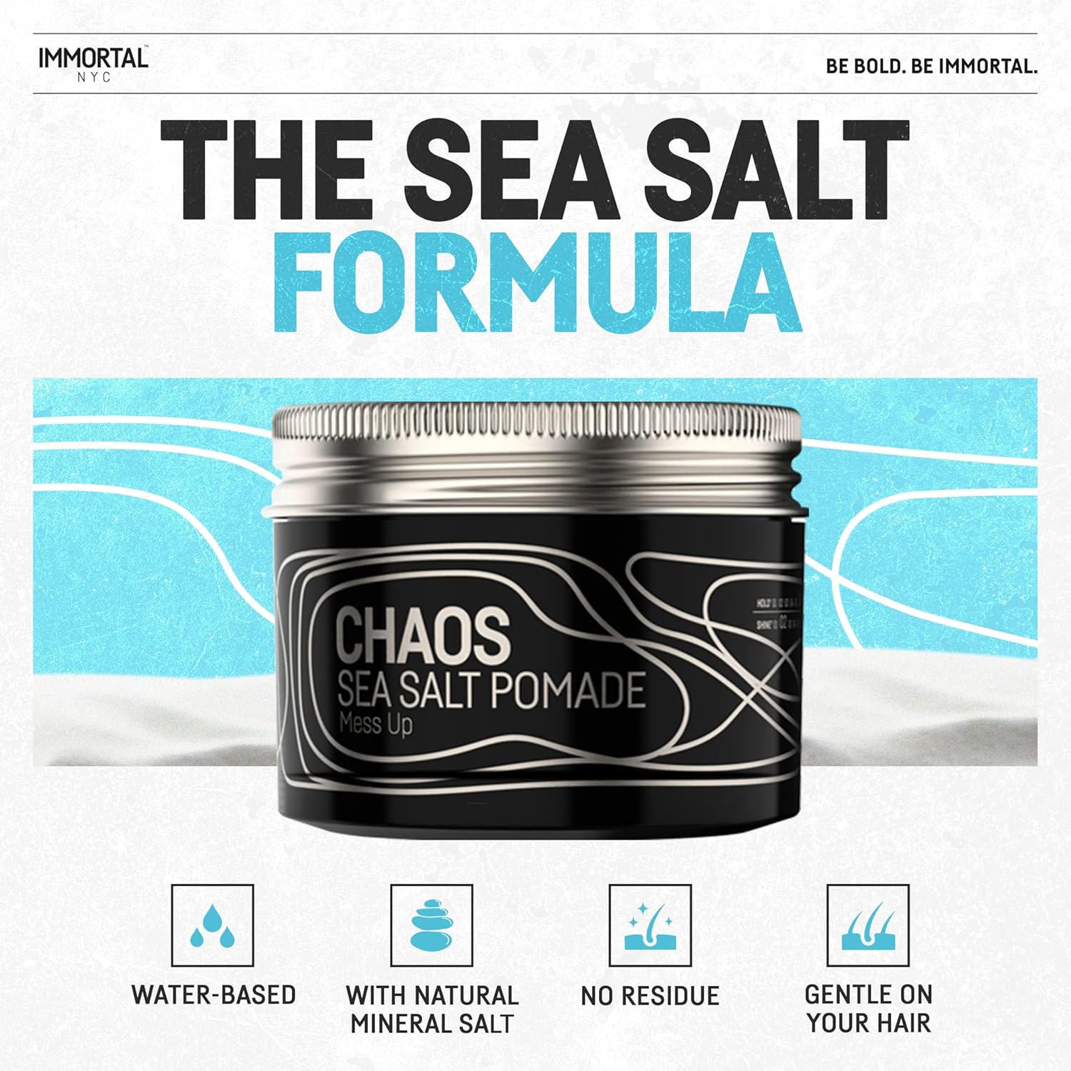Immortal NYC Exclusive 'SEA SALT' Pomade - Matte Natural Dry look - Firm Strong Hold - Extra Volume & more Texture-No Shine - 100 Ml/3.4 Oz (Travel size)