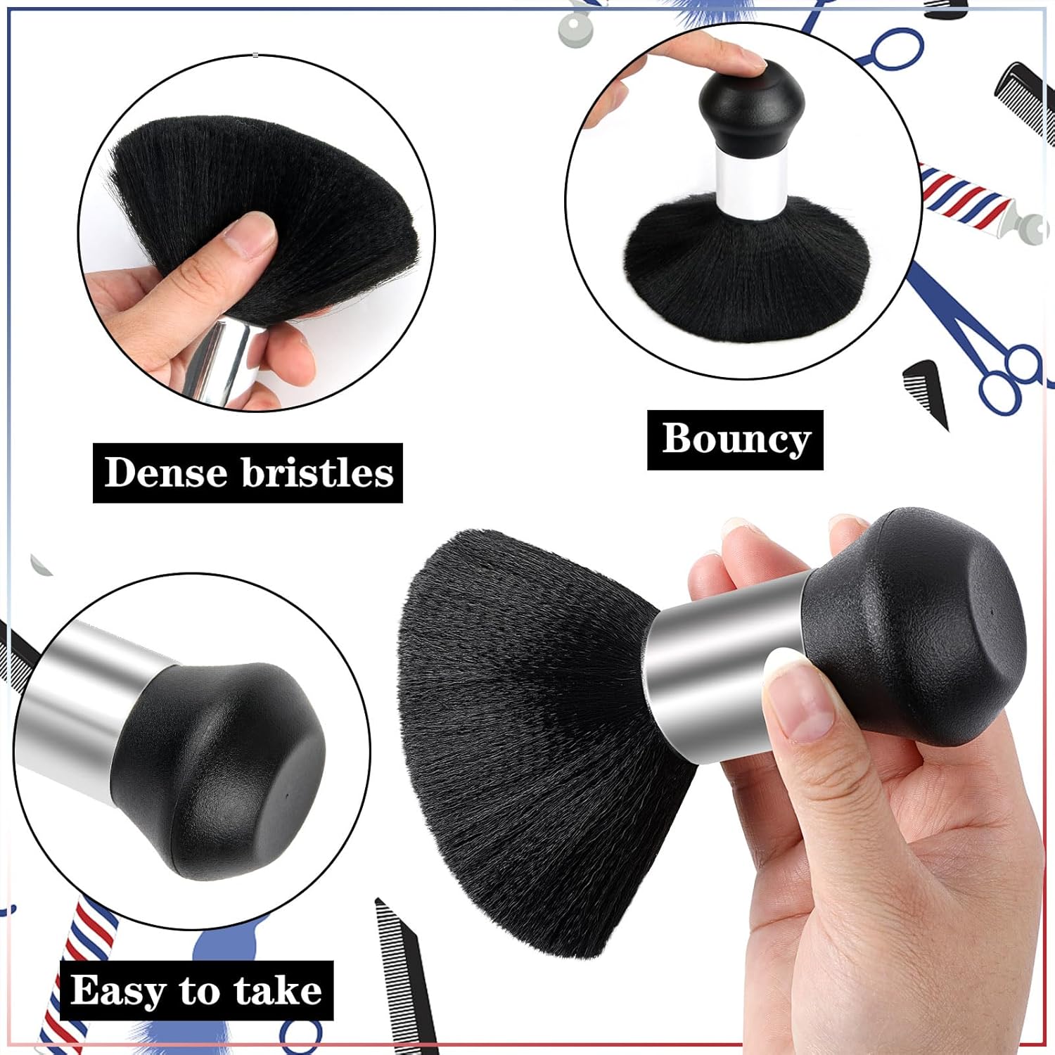 - Duster Brush - The neck duster brush is made of comfortable, dense nylon bristles,which touches soft and won’t stimulate skin.In accordance with ergonomics,the hair cutting cape is easy to take. The neck duster brush is scratch proof and can be used for a long time.The haircut cape can easily clean hair that sticks to your skin and clothes after haircut