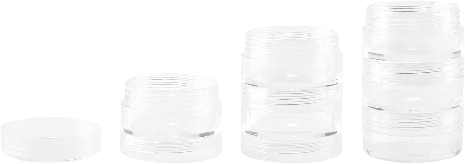 - 6 STACKABLE LAYERS - You’ll get 10 sets of 10g column stackable containers, each with 6 layers, each holding 10g / 10ml. A single container is 4.1" high and 1.5" in diameter. The clear stackable round containers make it easy to identify what's inside. You can also customize the number of layers of these stackable bead jars.