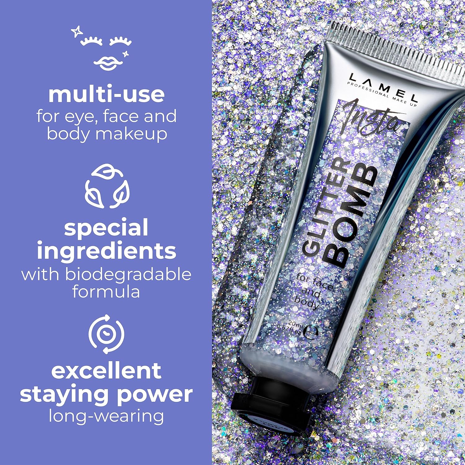 LAMEL Insta Glitter Bomb: Quick-Dry Holographic Face & Body Glitter Gel | Long-Lasting Shine & Effortless Removal | Perfect Face Glitter Makeup & Body, Hair Shimmer | Vegan & Cruelty Free -0.67 fl.oz