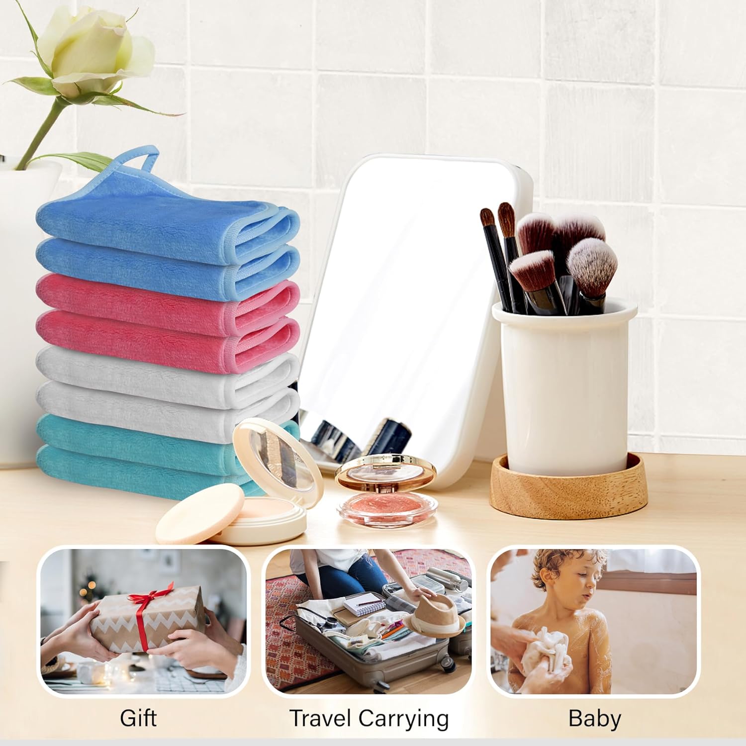 - Pack Included: Comes with 8 packs of reusable washcloths. Each cloth measures 7 x 13 inches. Each cloth has a handy hanging loop for easy storage and quick drying. Perfect for everyday use or travel