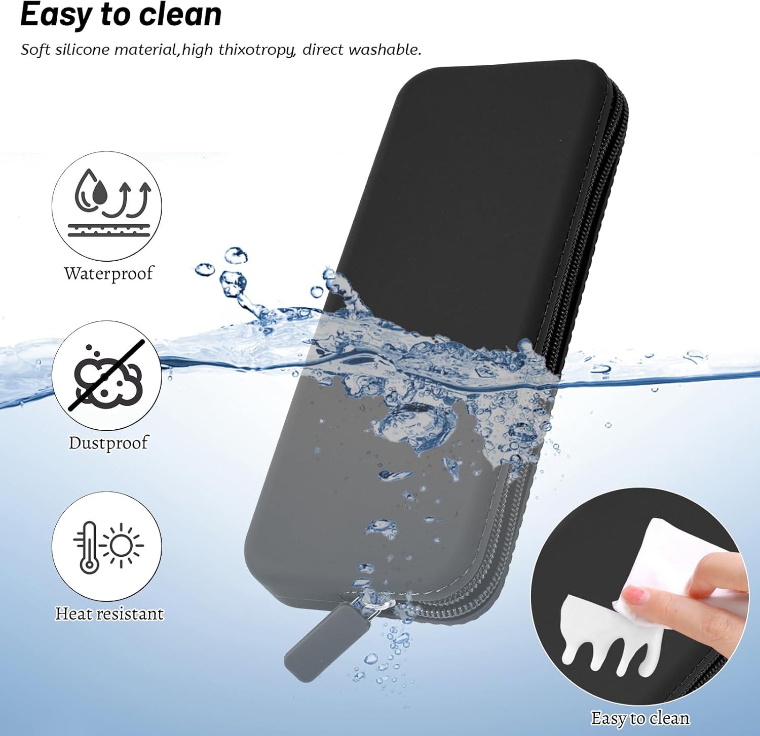 - 💄【Silicone Makeup Brush Holder】Made of high-quality silicone, soft and untransformed, no odor and friendly on skin. It is waterproof, dustproof and very durable. Smooth and modern, very sleek for travel. Zipper makeup brushes bag size is 7.87 x 3.2 x 0.9 inch (Individual package, excluding other accessories)