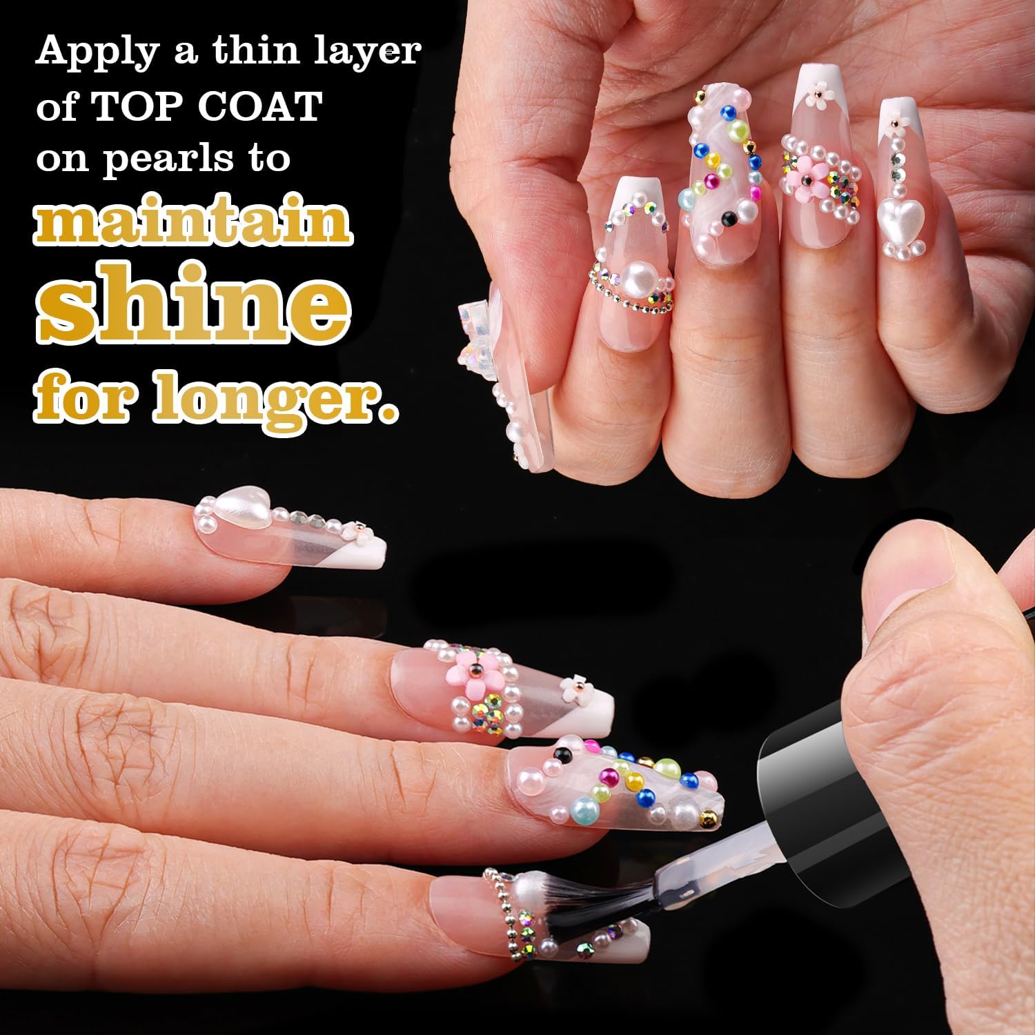 - ๐CHARMING COLORS & DISTINCTIVE EXTERIOR -- The clear color diamonds are luxurious and versatile that can be applied to multiple scenes. The AB color nail jewels can reflect bright light with iridescent glamour. All the nail crystals are featured with exquisite shapes and cutting facets. Our half-round pearl beads in colors of white and beige are smooth and glossy. We suggest applying a top coat over the pearls after completing your nail art to better maintain the pearls' luster and color.