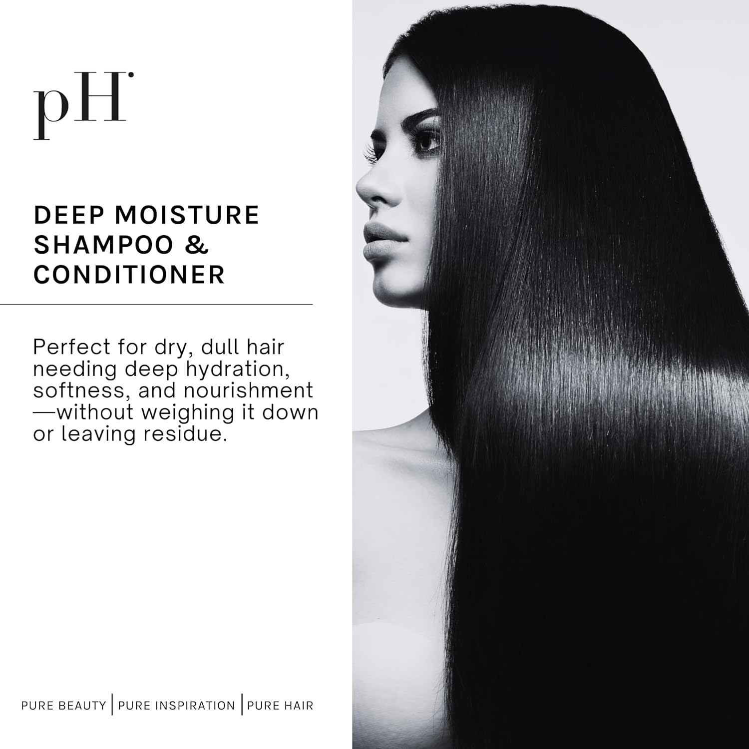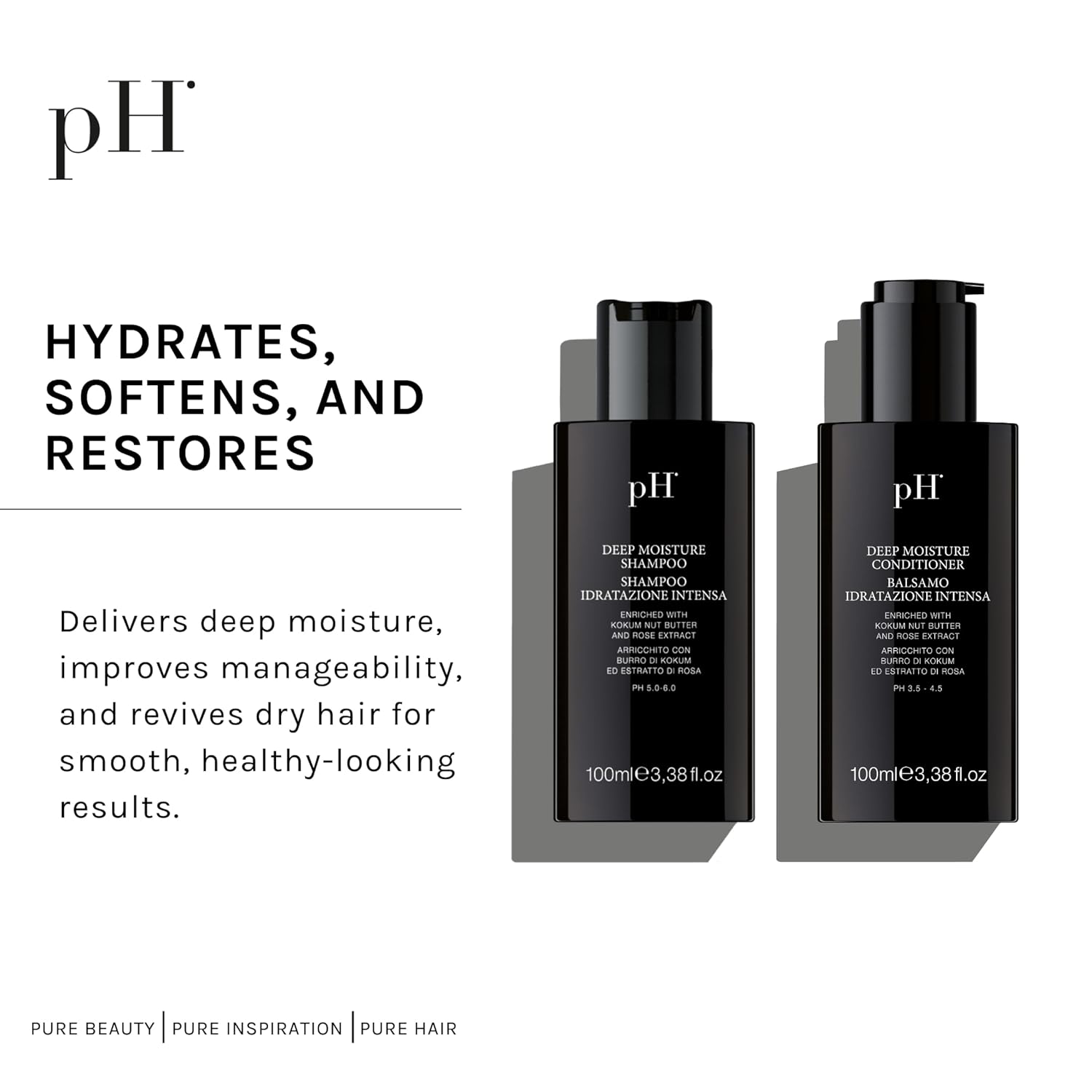 pH PURE HAIR Deep Moisture Shampoo and Conditioner Set - Hydrating and Moisturizing Shampoo and Conditioner - Dry Hair - Enriched with Kokum Nut Butter and Rose Extract (3.38 Oz each)