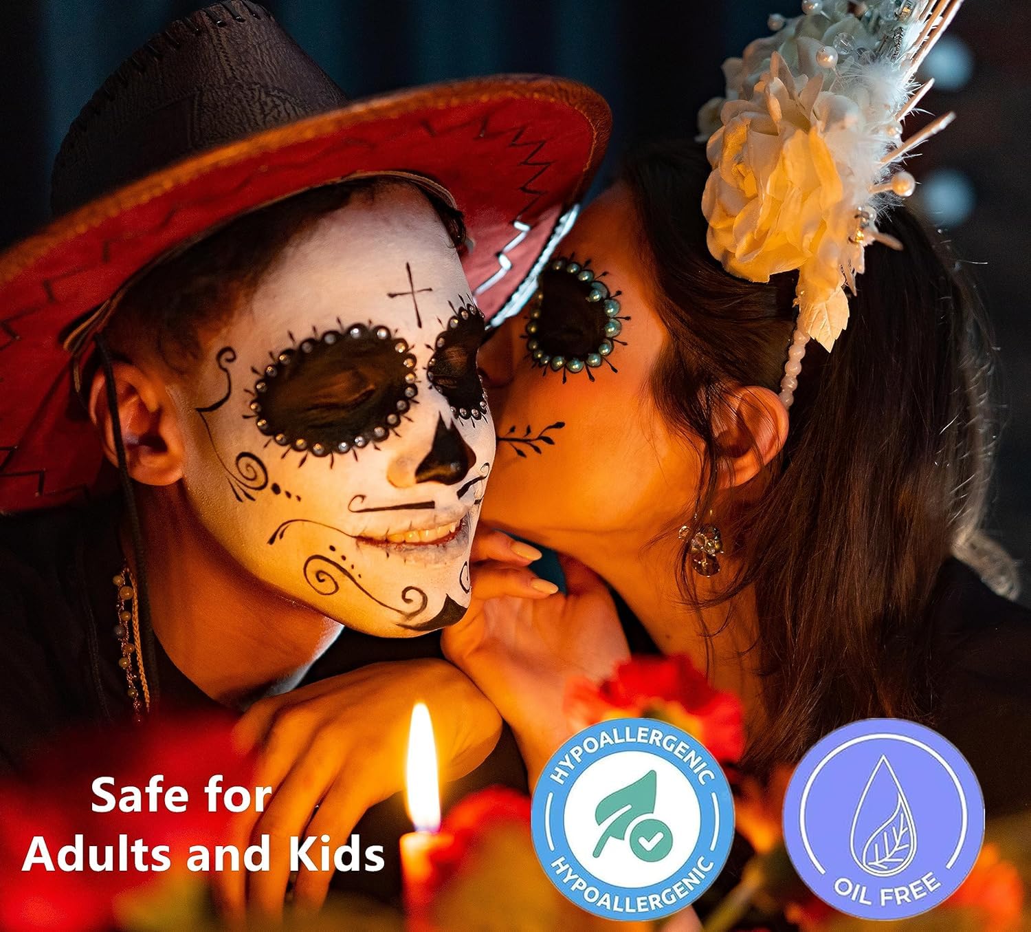 - 【Easy to Dry & Highly Pigmented】Easy to dry, dry in about 5-10 minutes.Highly pigmented and smooth application. Suitble for all kinds of skins.Halloween makeup has become very simple, and it is also very convenient for children to use. it is lightweight and easier to carry when going out.