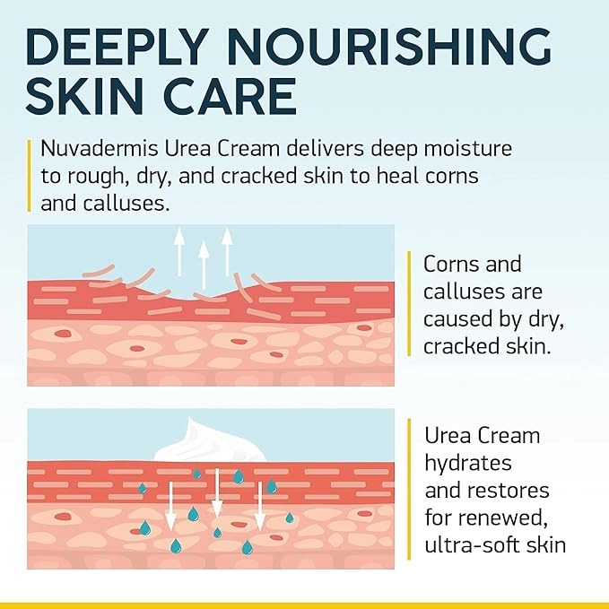 - Urea Cream for Dry and Cracked Skin: Our 40% Urea cream is a potent topical moisturizer that delivers intense hydration and smoothing benefits to severely dry, cracked skin. Ideal for addressing corns, calluses, and rough patches on feet and other areas.