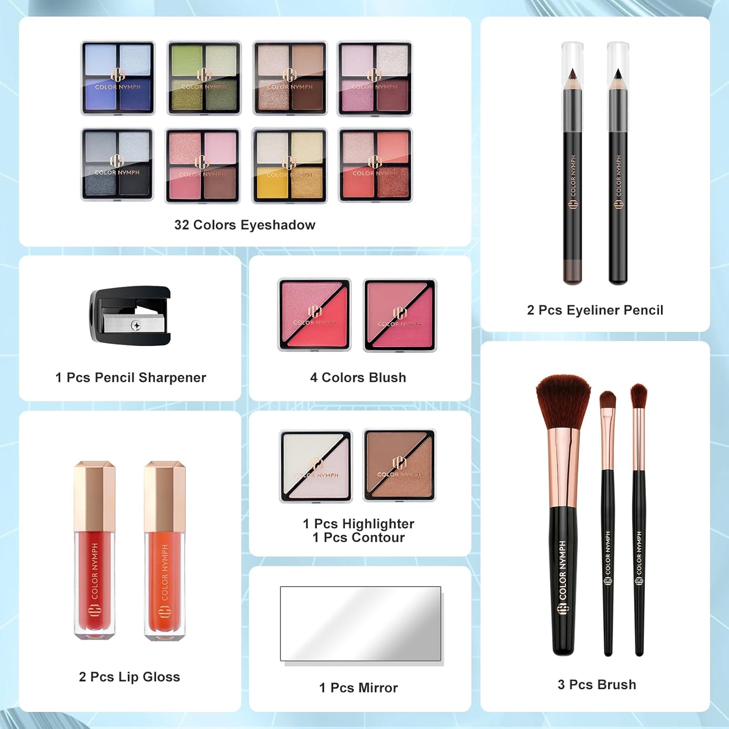 - 【Long-Lasting & Gentle Formula Makeup】:Color Nymph aims to minimize the risk of allergic reactions. All the Makeup Product are made with cruelty-free and healthy formula which has test suitable for sensitive skin, ensuring they are safe to use on your face, lips, and eyes.
