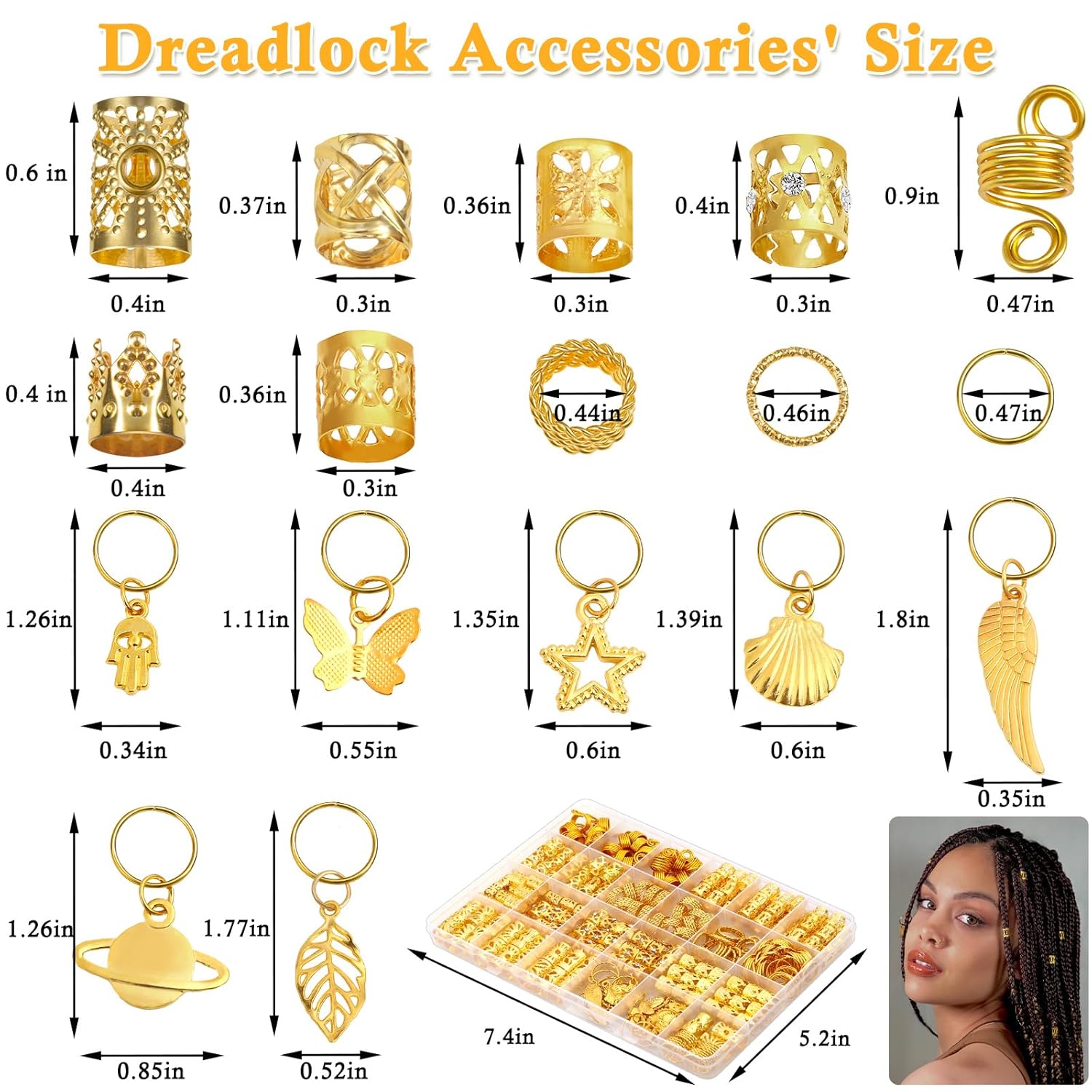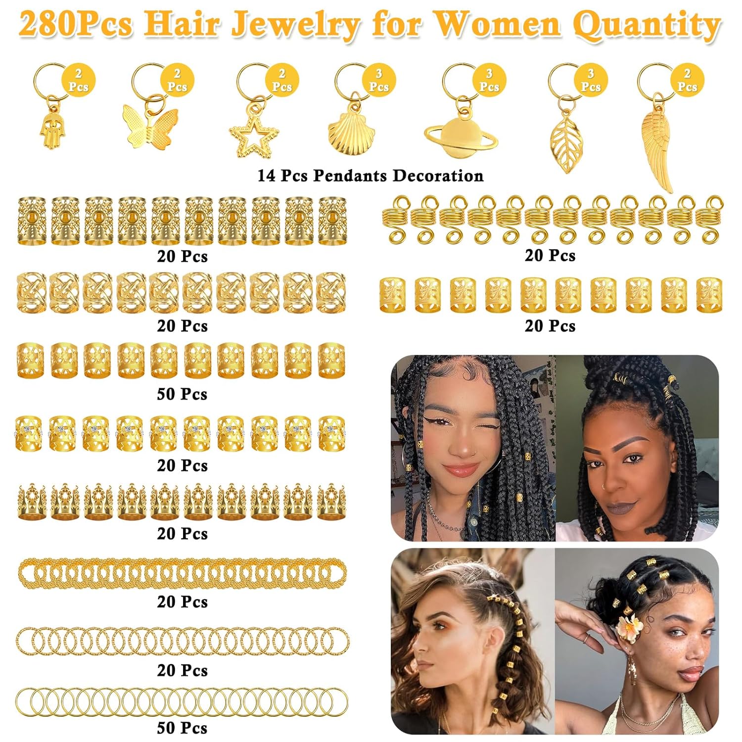 - Hair Jewelry Quantity: Our Hair Jewelry for Braids collection brings a touch of elegance and individuality to your hairstyles. You will receive 280 pieces of braids hair jewelry in a storage box, a total of 18 different shapes, which come in various styles and sizes. Adjusting the braiding beads according to your hair volume and your needs