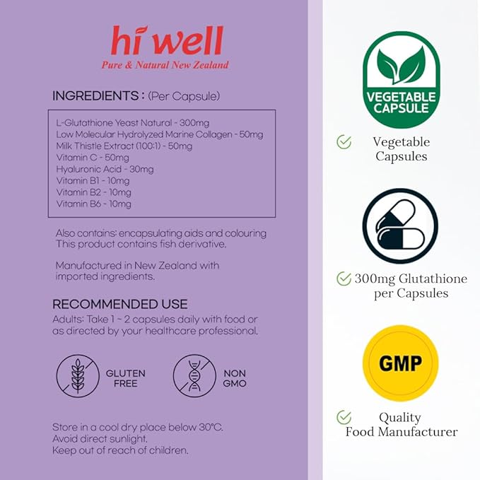Hi Well Premium Glutathione with Marine Collagen 90 Vegetable Capsule