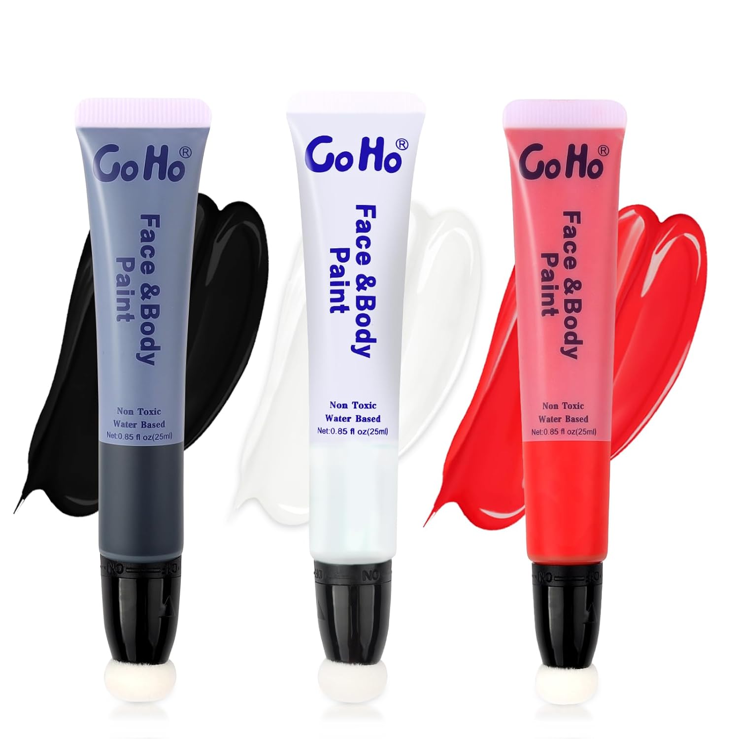 Go Ho Red Black and White Face Body Paint(2.55 oz),Washable Easily,Smooth and Full Coverage for Halloween Costumes Cosplay SFX Skull Vampire Zombie Clown Makeup