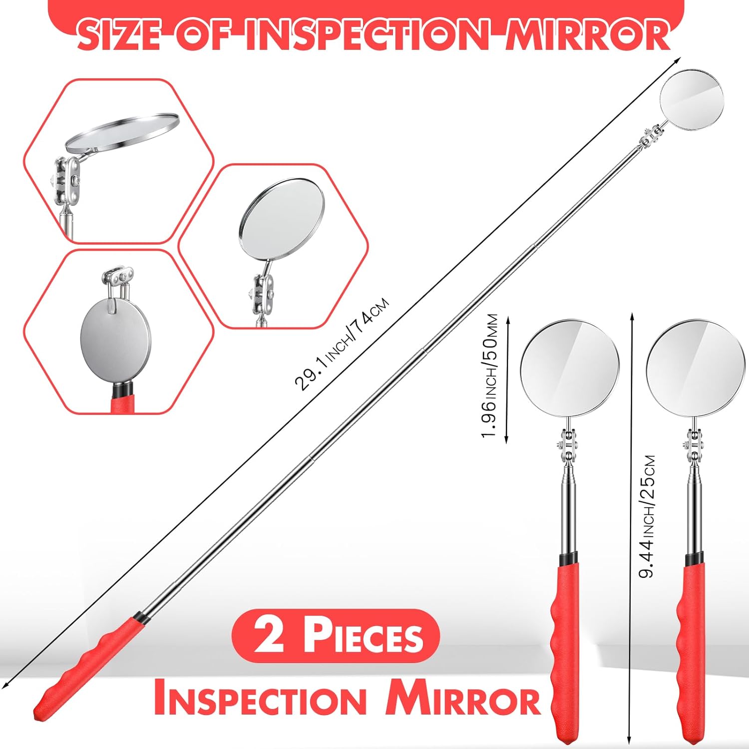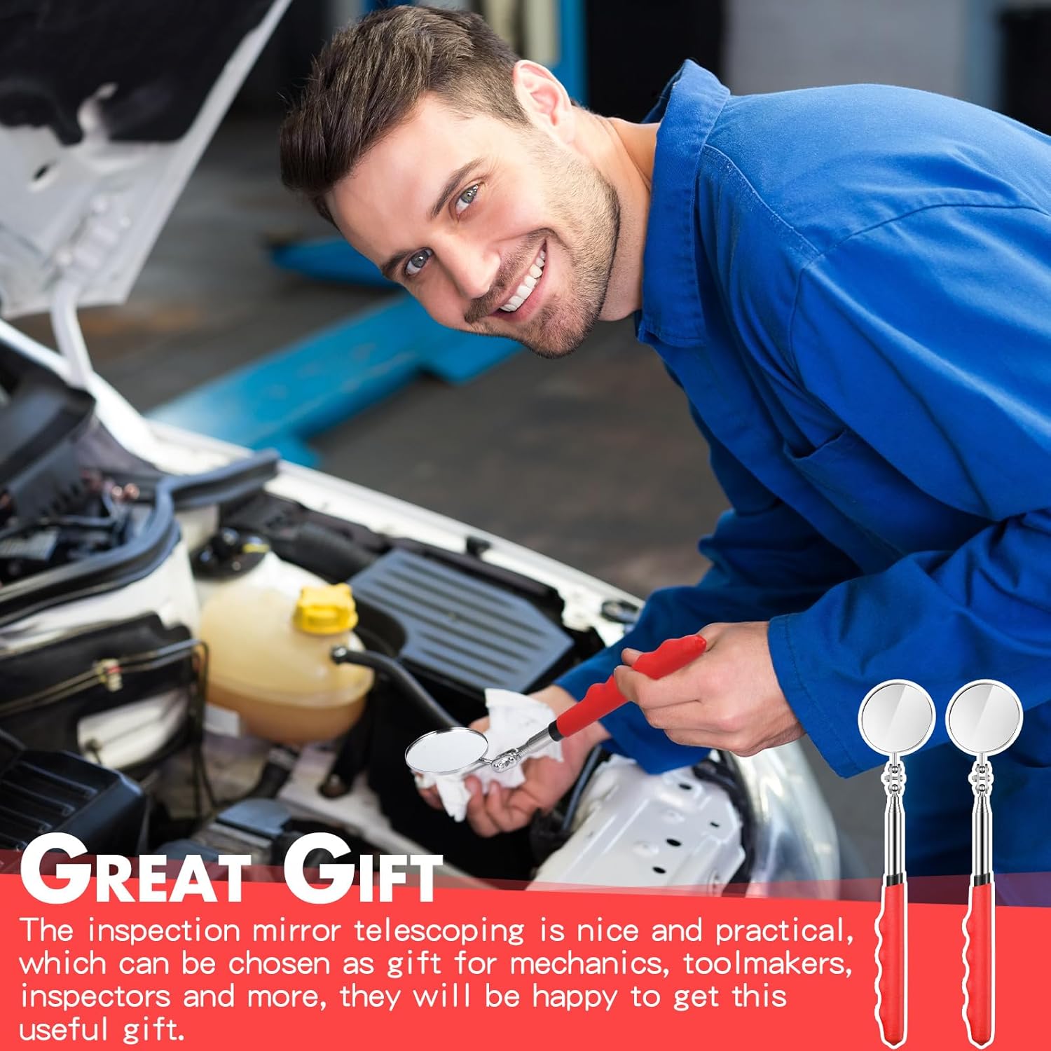 2 Pcs Telescoping Inspection Mirrors, Mechanics Mirror Tool with Long Handle, Round Extendable Mirror on a Stick for Technicians Mechanics Contractors Checking Observation(50mm,Red)