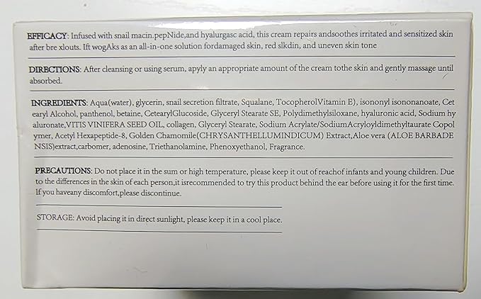 - 【DAILY FACIAL REPAIR】Use this cream daily to repair and nourish your skin, giving it a healthy and glowing complexion. It's easy to apply and quickly absorbs into your skin, leaving no greasy residue. Enjoy the benefits of snail mucin for your skin with It!