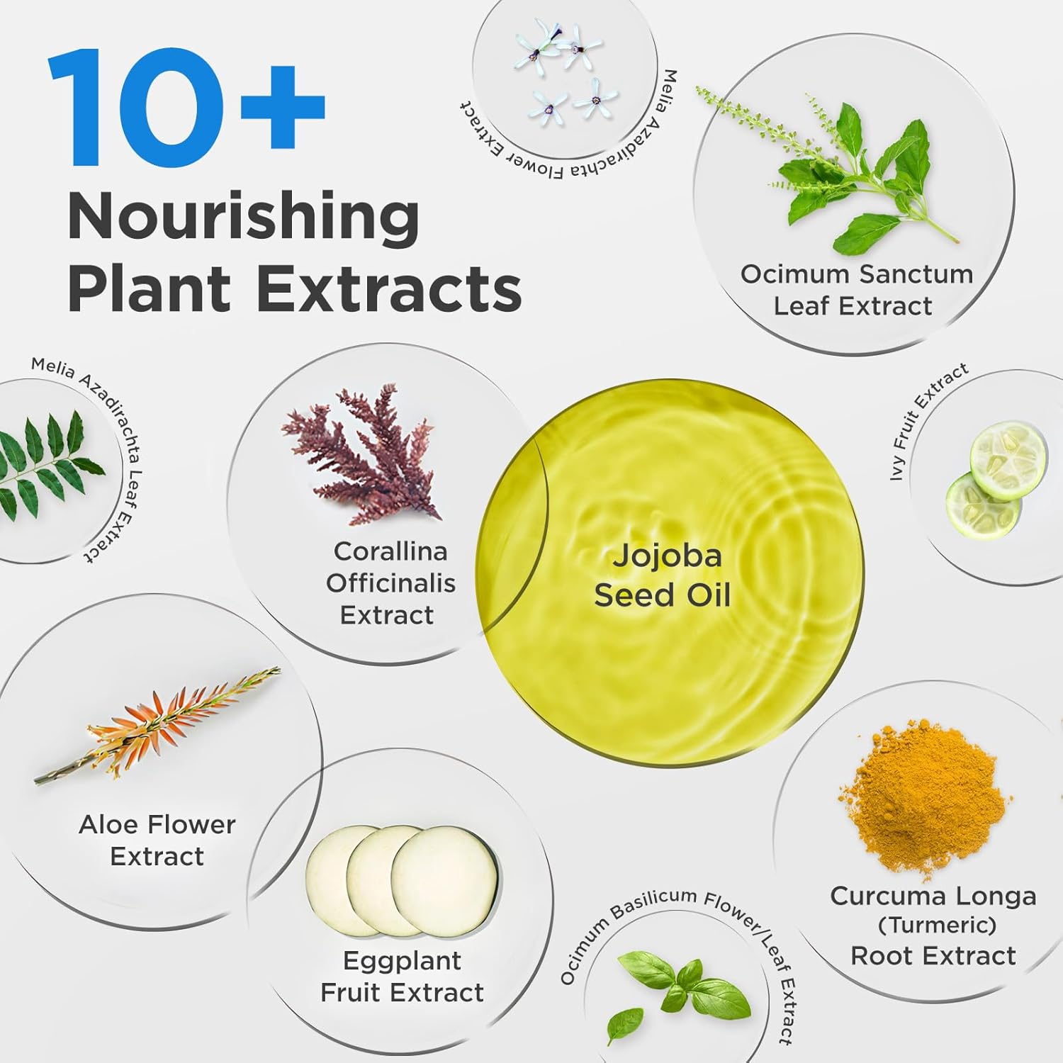 - MULTI-PLANT SOOTHING COMPLEX — Enriched with neem, coral weed, aloe vera, basil and turmeric extracts to calm and nourish the delicate eye & lip area during cleansing.
